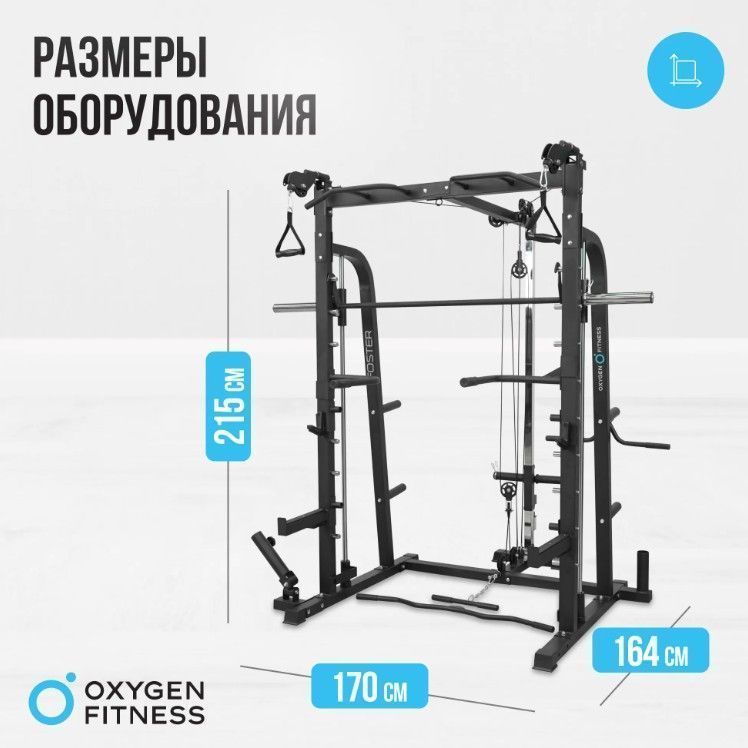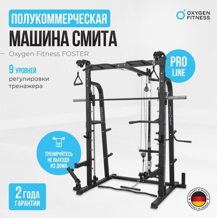 ОписаниеМашина Смита OXYGEN FITNESS FOSTER — это идеальное решение для тех, кто ищет качественное полукоммерческое силовое оборудование на свободных весах. Созданная с учетом современных требований фитнес-индустрии, этот тренажер позволяет эффективно тренировать различные группы мышц, обеспечивая надежность и безопасность во время занятий. С весом нетто 128 кг, машина обладает прочной конструкцией, которая гарантирует стабильность во время выполнения упражнений. Гриф, длиной 197 см с диаметром 50 мм, обеспечивает удобство и комфорт при тренировках. Устройство оснащено 9 уровнями регулировки, что позволяет легко адаптировать его под индивидуальные потребности пользователя. Машина Смита OXYGEN FITNESS FOSTER позволяет выполнять широкий спектр упражнений, нацеленных на развитие различных групп мышц. Благодаря наличию 2 стаканов для грифа и 4 пружинных замков, вы сможете быстро и безопасно менять веса, что делает тренировки еще более эффективными. С помощью стального троса диаметром 5 мм, вы получите надежную и долговечную систему нагрузки. Машина Смита OXYGEN FITNESS FOSTER — это ваш надежный партнер на пути к достижению поставленных фитнес-целей! Ключевые преимущества OXYGEN FITNESS FOSTER: • полукоммерческое назначение, подходит как для домашних тренировок, так и для небольших фитнес-залов; • надежность и качество: прочные стальные тросы и высококачественные материалы; • широкие возможности для тренировки разных групп мышц с использованием свободных весов;