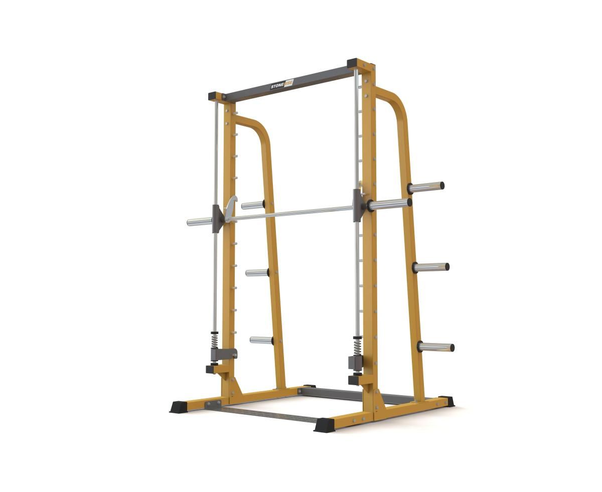 Каркас изготовлен из прочной стали с профилем 70 х 50 х 2 мм, что гарантирует устойчивость и долговечность конструкции. Машина оснащена встроенным грифом длиной 180 см с посадочным диаметром 50 мм и максимальной нагрузкой до 300 кг. Для хранения дисков предусмотрено 6 посадочных мест диаметром 50 мм, каждое из которых выдерживает нагрузку до 150 кг.