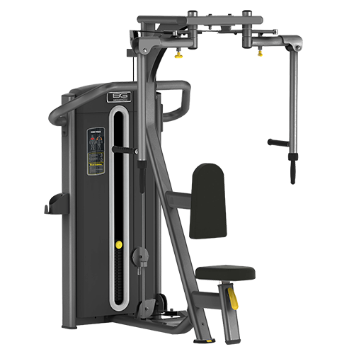 Профессиональный станок премиум-класса для выполнения жима от груди и заднюю дельту. Серия Bronze Gym M05, вдохновленная современным искусством, выполненная в черном цвете с яркими, желтыми акцентами. Мощный овальный профиль станины 60*120 мм. толщиной 2.5 мм. с двухслойной покраской. Максимальная эффективность выполнения упражнений основана на современной технологии независимых рычагов с синхронизацией либо асинхронизацией движений. Качественные материалы обеспечивают надежность конструкции тренажера. Рукоятки выполнены из термопластичного вулканизата TPV на основе этилен-пропиленового каучука. Тросовый блок состоит из надежных роликов с впрессованным высокоточным малошумным подшипником (тип 6202RS) и стального витого троса в PVC оболочке с общим диаметром 5.5 мм. Удобное контурное сиденье из искусственной кожи на натуральной подложке регулируется по вертикали. Общий вес стека составляет 80 кг. В дополнение ко всему установлена подставка для бутылочки с водой.