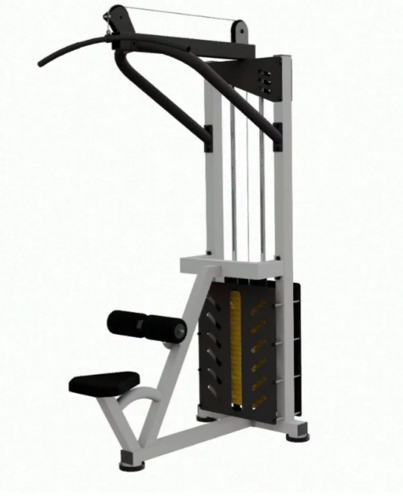 Несущая конструкция тренажера для верхней тяги изготовлена из профиля 60х80 мм, толщина стенки 2 мм. Покраска рамы выполнена методом порошковой окраски. Конструкция оборудования имеет радиальные загибы, что значительно увеличивает ее прочность.