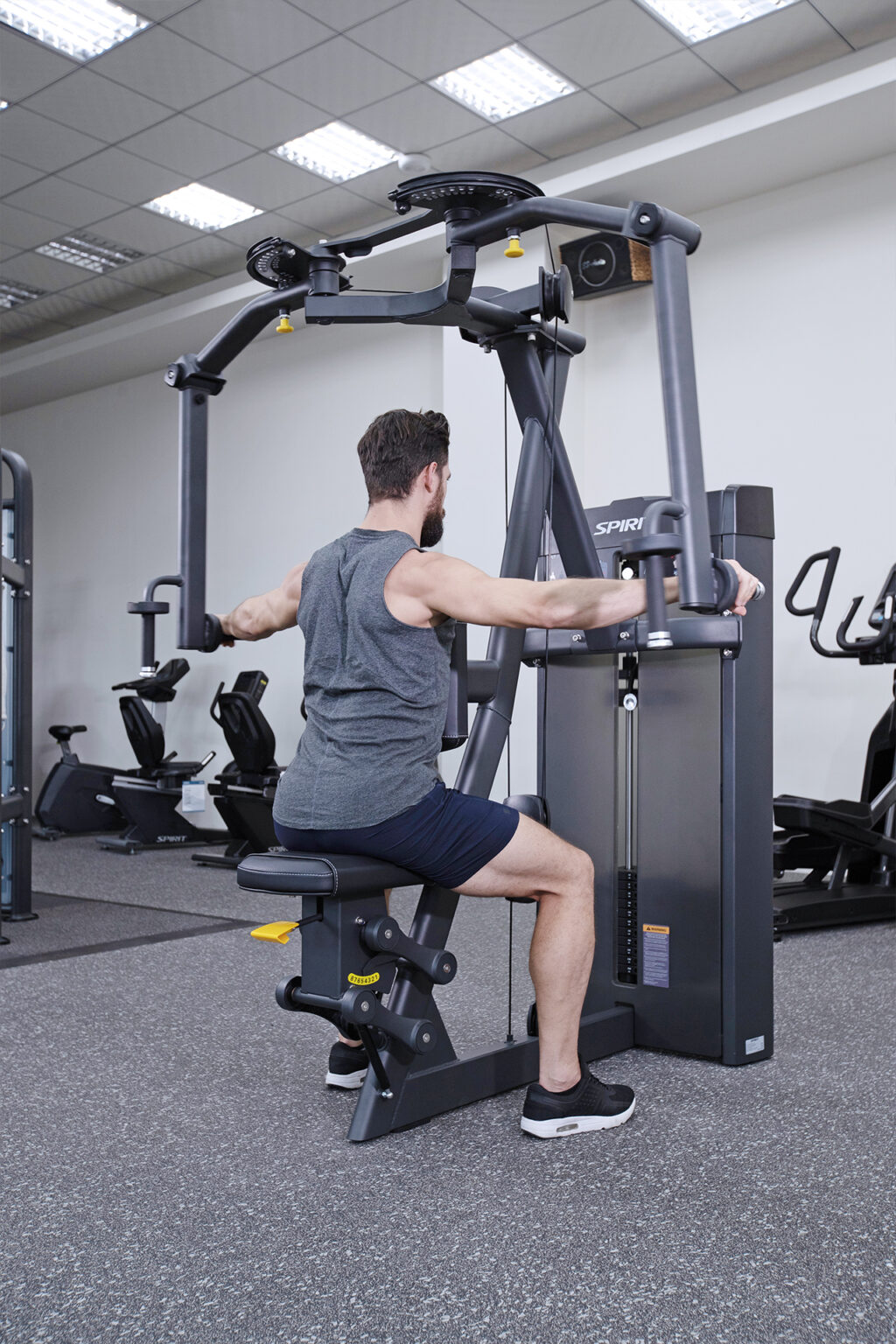 Тренажер является отличным решением при оснащении фитнесс залов разной проходимости. Компания Spirit, как знаменитый производитель качественных спортивных товаров, предлагает клубный тренажер, изготовленный по самым высоким стандартам качества. Тренажер окрашен в темные тона с элементами черного пластика, который защищает и одновременно декорирует силовую станцию. Удобное и крепкое сидение имеет покрытие, разработанное для интенсивной эксплуатации. Широкая рамная конструкция способствует дополнительной стабильности, обеспечивает равномерное распределение нагрузки исключая раскачивание и вибрацию.