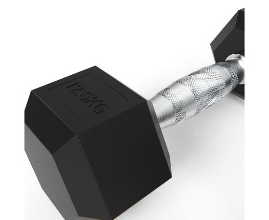 Гантель обрезиненная с хромированной ручкой. Вес гантели 12.5 кг, в комплекте 2 штуки (пара).