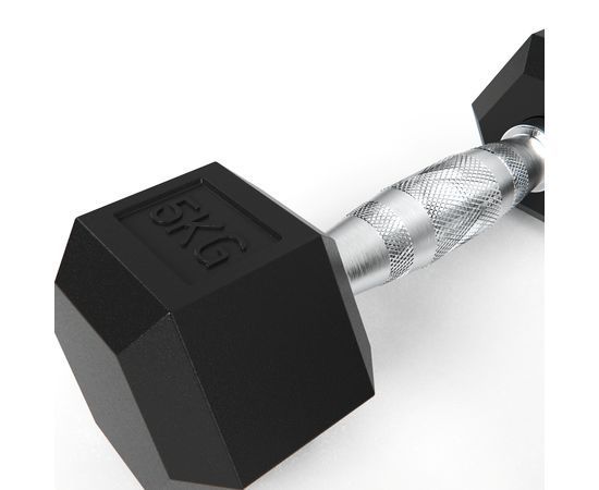 Гантель обрезиненная с хромированной ручкой. Вес гантели 5 кг, в комплекте 2 штуки (пара).