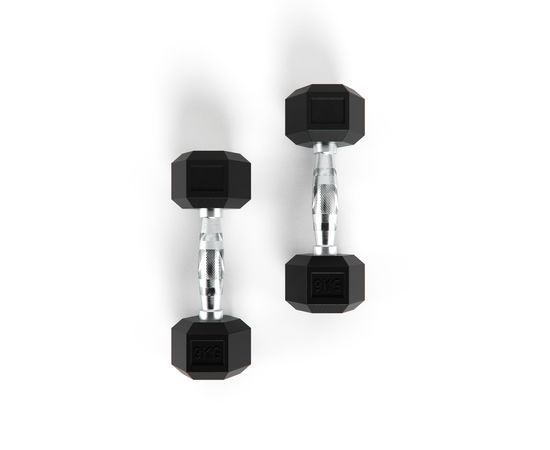 Гантель обрезиненная с хромированной ручкой. Вес гантели 9 кг, в комплекте 2 штуки (пара).