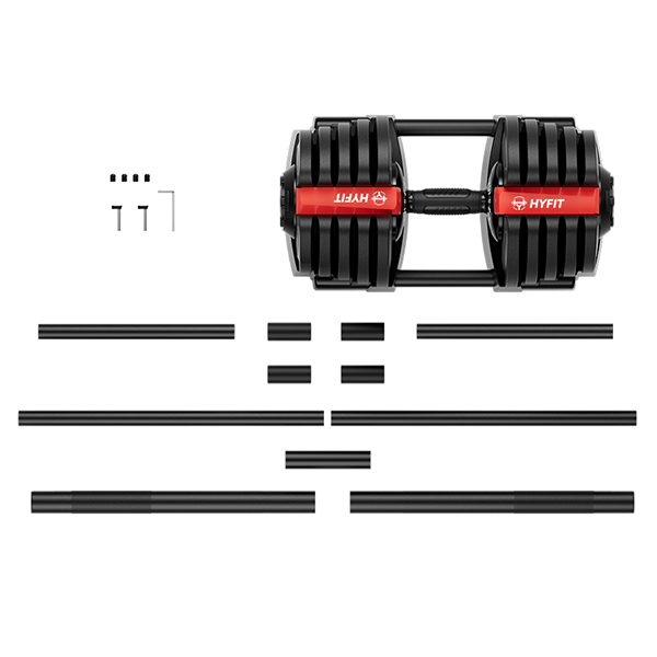 Многофункциональный набор HYFIT сочетает в себе силу, эффективность и универсальность в одном комплекте. HYFIT предлагает разборную конструкцию, которая легко трансформируется из штанги в гантель. Вы можете легко регулировать вес как гантели (5-40 кг), так и штанги (5-40 кг). Он подходит для разных уровней физической подготовки и видов упражнений — от силовых тренировок до кардионагрузок. Этот комплект станет идеальным решением для домашних тренировок, позволяя развивать силу, выносливость и формировать рельеф.
