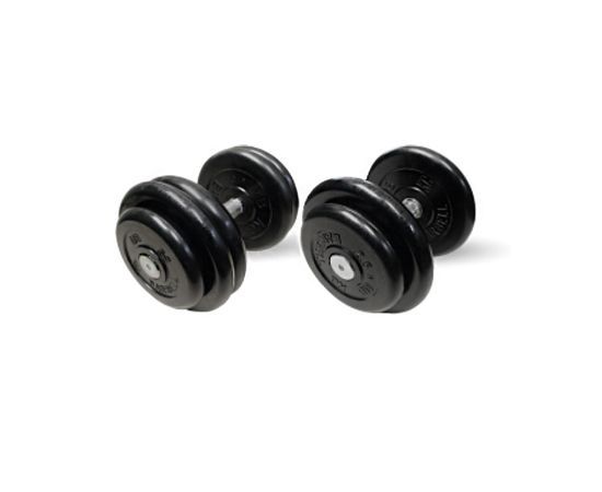 Гантели собираются из весов в 1,25; 2,5 и 5 кг. и ручек с заглушками.