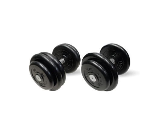 Гантели собираются из весов в 1,25; 2,5 и 5 кг. и ручек с заглушками.