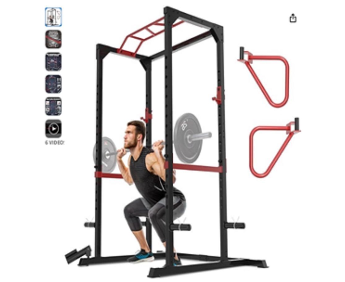 Максимальная статичная нагрузка составляет до 250 кг, что делает тренажёр подходящим для большинства пользователей. Конструкция оснащена грузовой трубой для установки весовых дисков, а также регулируемой рамой, позволяющей адаптировать тренажёр под рост и формат тренировок. Держатели штанги и страховочные элементы обеспечивают безопасное выполнение базовых силовых упражнений с контролем техники.