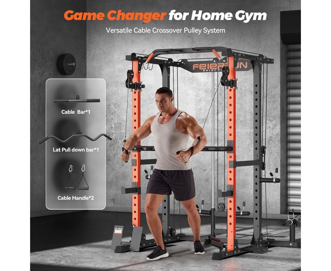 Максимальный вес пользователя составляет до 120 кг, что обеспечивает безопасную и комфортную эксплуатацию тренажёра для пользователей разного уровня подготовки. Рама имеет прочный профиль и посадочный диаметр, а толщина тросов и рукояти для тяги обеспечивают надёжность и стабильность при выполнении упражнений.
