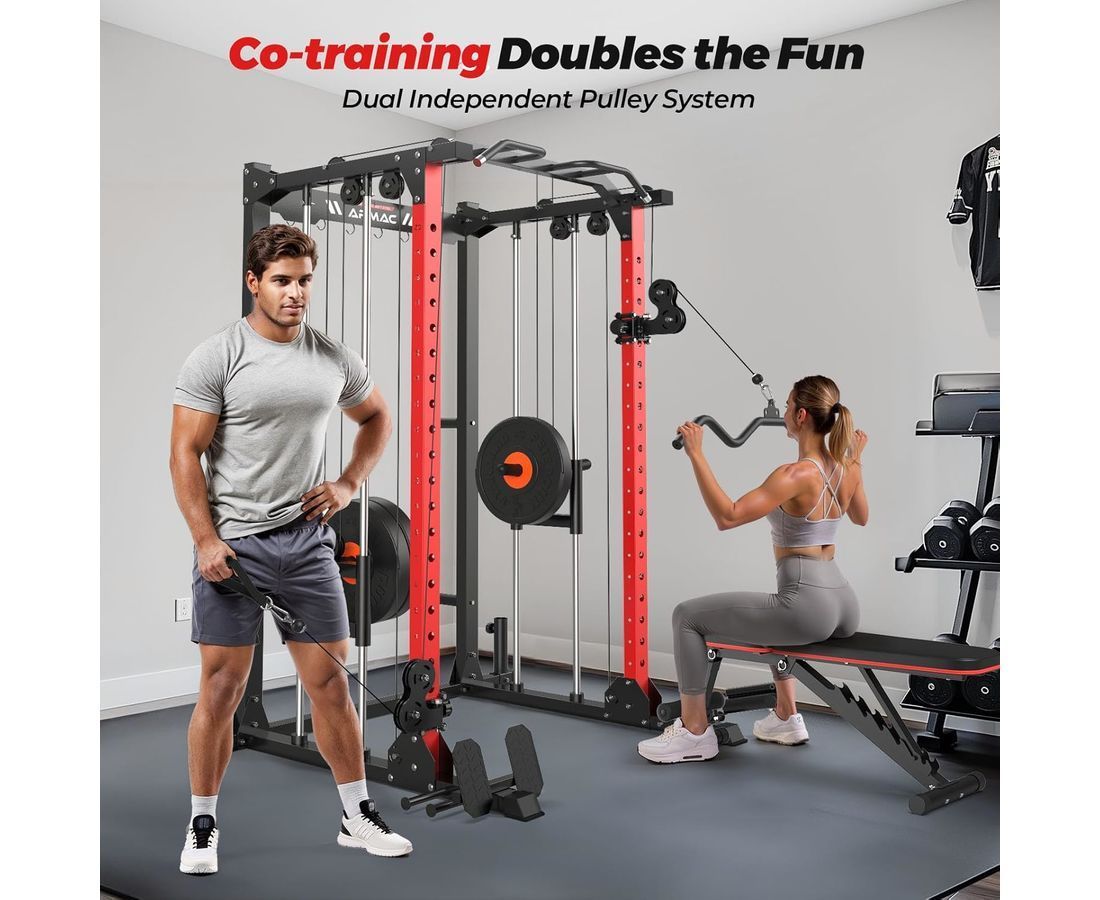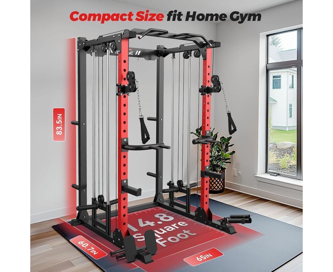 Максимальный вес пользователя составляет до 120 кг, что обеспечивает безопасную и комфортную эксплуатацию тренажёра для пользователей разного уровня подготовки. Рама имеет прочный профиль и посадочный диаметр, а толщина тросов и рукояти для тяги обеспечивают надёжность и стабильность при выполнении упражнений.