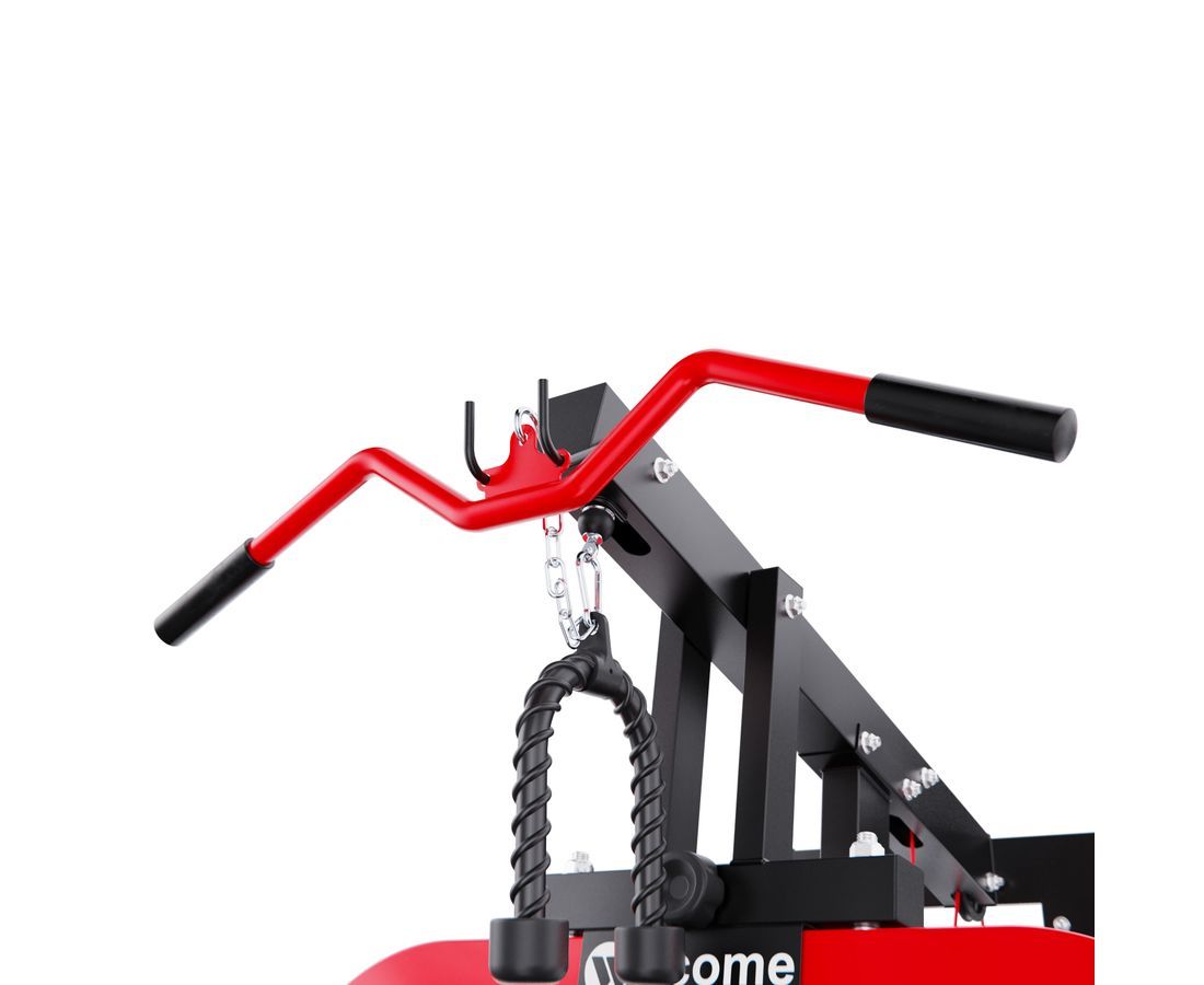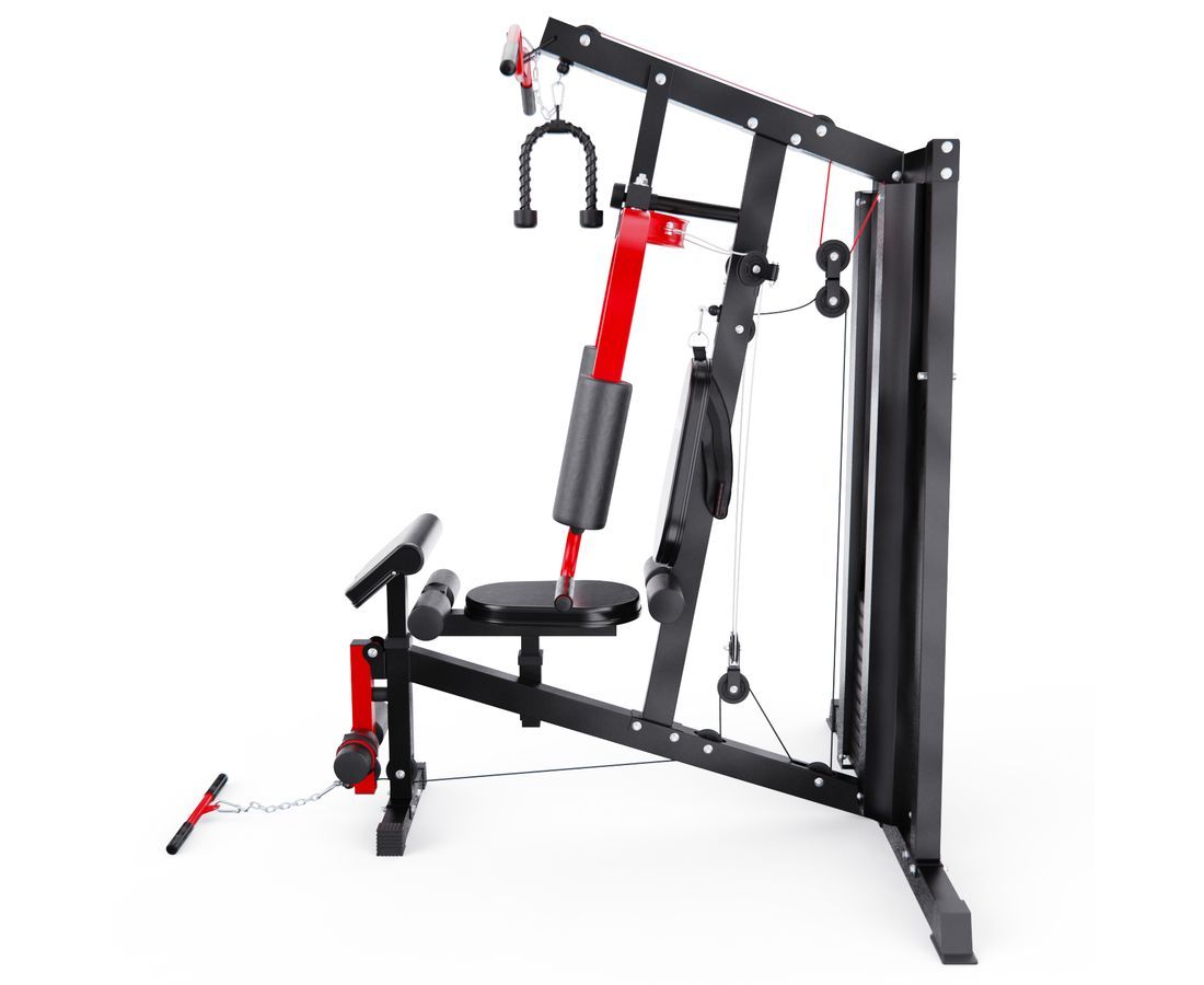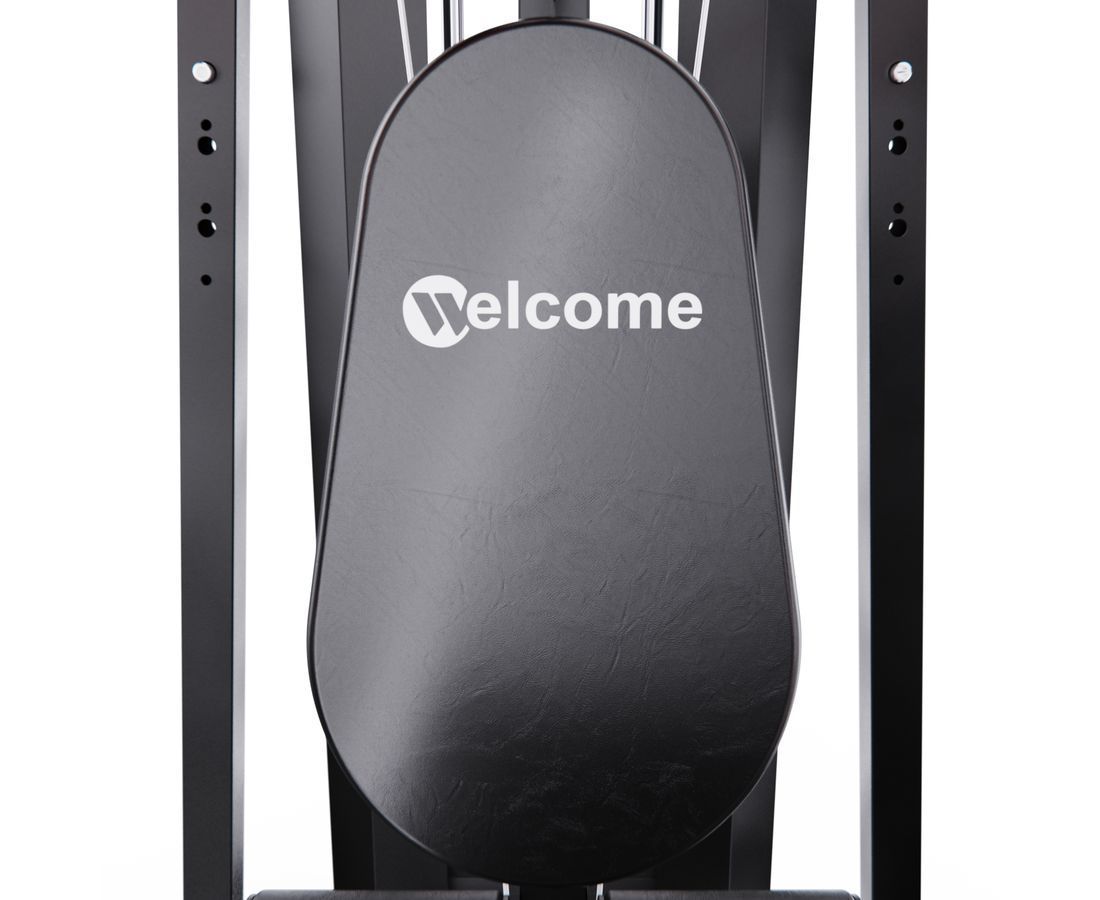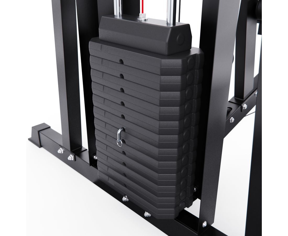 Габариты в рабочем состоянии — 147 х 133 х 208 см, что позволяет разместить тренажёр даже в условиях ограниченного пространства, например, в квартире. Эргономичная конструкция обеспечивает комфорт и безопасность во время занятий. В комплекте — 11 весовых блоков по 5,8 кг и 1 верхний на 3 кг, общим весом 66,8 кг. Это позволяет гибко подстраивать тренировочную нагрузку под ваш уровень подготовки.