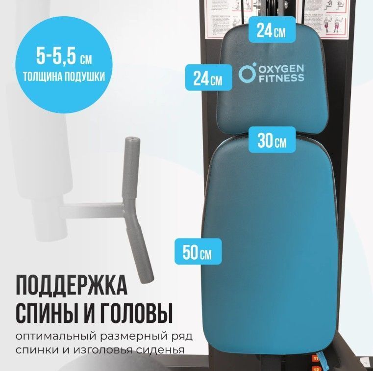 ОписаниеСиловой комплекс OXYGEN FITNESS NOLAN PLUS — это многофункциональная мультистанция, предназначенная для эффективной тренировки всех групп мышц. С максимальной весовой нагрузкой до 73 кг и прочной стальной конструкцией, этот тренажер обеспечивает надежность и долговечность в эксплуатации. Его эргономичное сиденье с наполнителем из PU поролона и обивкой из искусственной кожи гарантирует комфорт даже во время длительных тренировок. Комплекс позволяет выполнять разнообразные упражнения для всех групп мышц благодаря наличию 12 плит стека весом 5.7 кг каждая, что дает возможность легко настраивать уровень нагрузки. С системой тросов диаметром 6 мм и прочной стальной конструкции, вы можете быть уверены в безопасности и эффективности тренировок. Регулируемое сиденье с 4 уровнями высоты позволяет адаптировать тренажер под рост пользователя, что делает его подходящим для людей разного телосложения. В комплекте с OXYGEN FITNESS NOLAN PLUS вы найдете множество удобных аксессуаров: канат для трицепса, рукоятку для тяги сверху, манжету для ноги, прямую рукоятку и платформу для жима ногами. Также в комплектацию входят неопреновые валики: 4 для ног и 2 для рук, что обеспечивает дополнительный комфорт и безопасность во время тренировок. Размеры подушек (парта бицепса, спинка и сиденье) разработаны с учетом анатомических особенностей, что способствует правильной поддержке тела. Силовой комплекс OXYGEN FITNESS NOLAN PLUS станет отличным выбором для домашних тренировок или для использования в корпоративных фитнес-клубах, обеспечивая эффективность и комфорт во время занятий. Ключевые преимущества OXYGEN FITNESS NOLAN PLUS: • многофункциональность: возможность тренировки всех групп мышц с помощью одного тренажера; • комфорт: эргономичное сиденье и продуманные размеры подушек для максимального удобства; • надежность: прочная стальная конструкция и качественные материалы обеспечивают долгий срок службы.
