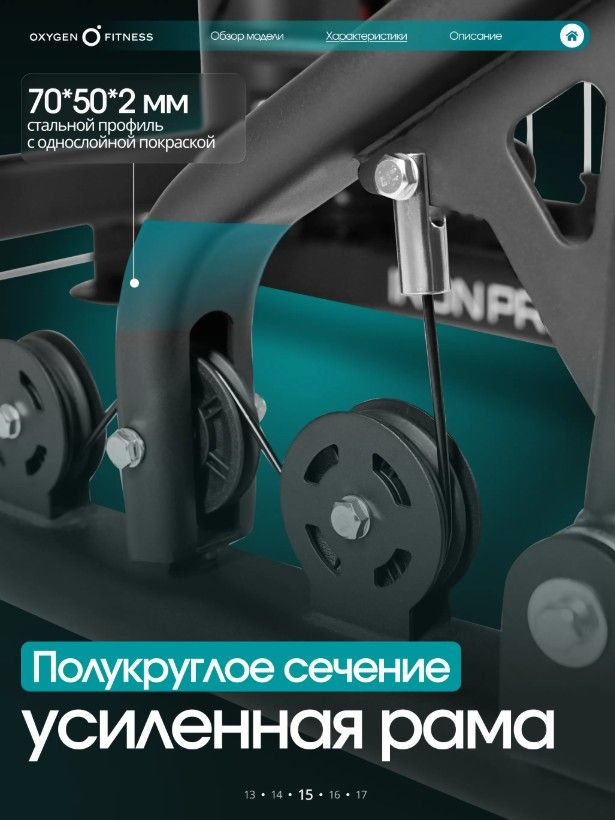 OXYGEN FITNESS IRON — это надежная силовая мультистанция, которая объединяет функциональность, комфорт и долговечность. Один тренажер заменяет целый комплекс оборудования и позволяет проводить полноценные силовые тренировки, не выходя из дома.