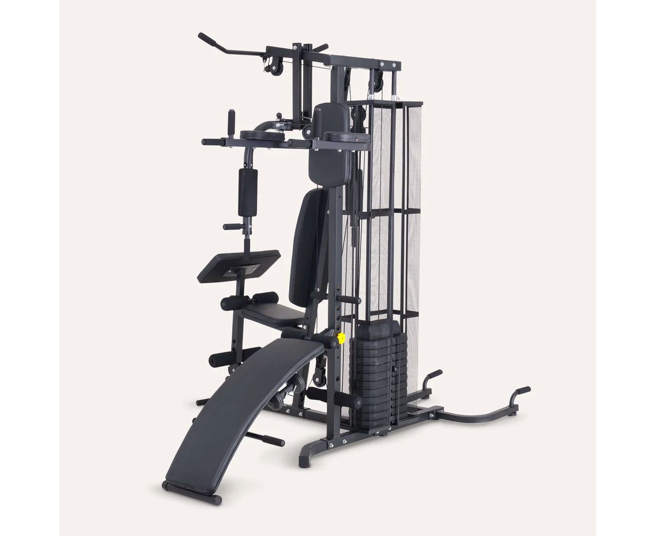 Силовой комплекс DFC D4700 - это универсальный тренажер, который позволяет осуществлять широкий спектр упражнений для различных групп мышц. Весовой стек на 55 кг позволяет изменять нагрузку в зависимости от уровня подготовки пользователя.