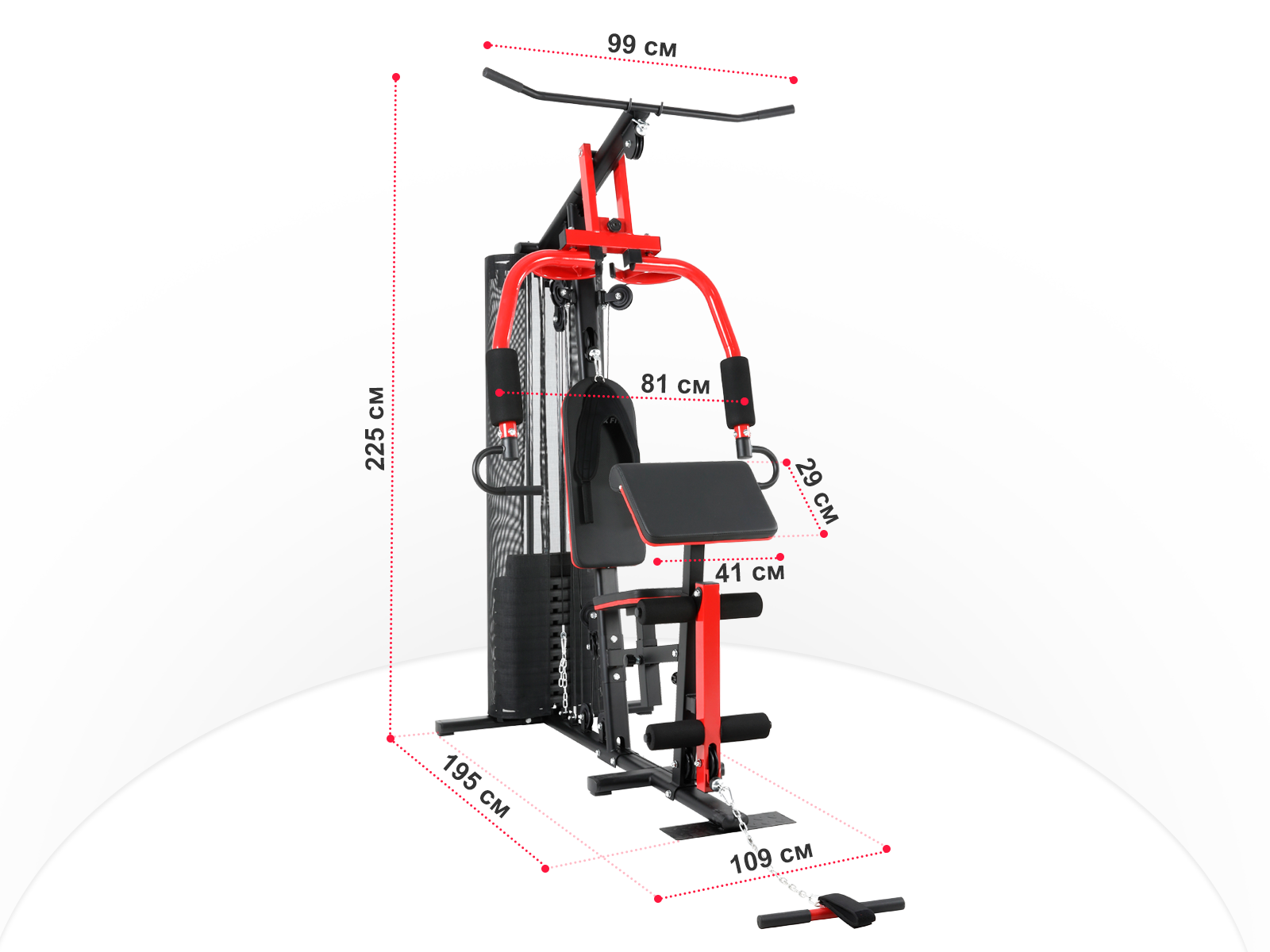 Тип тренажера однопозиционный многофункциональный Назначение Домашнее Рама устойчивая из высокопрочной стали Профиль, мм 45 х 45 и 38 х 38, толщина 1,5 Нагрузка 1 стек с весовыми плитами Вес стека, кг 70 Тип стека весовые плиты в пластикате ( шт) Защита стека есть Тросы стальные в нейлоновой оболочке Направляющие хромированные Спинка комфортабельная из ЭКО-кожи с плетеной структурой (Carbon TX) Размер сиденья, см по вертикали Максимальный вес пользователя (кг) 140 Размер в рабочем состоянии в см (Д*Ш*В) 195 х 109 х 225 Вес нетто (кг) 116 Вес брутто (кг) 50,1 / 36,9 / 35,85 Размер упаковки в см (Д*Ш*В) 190,5 х 48,5 х 18 Объем упаковки (м³) 0,2228 Гарантия 2 года Производитель UNIX Fit ® Страна изготовления КНР Характеристики
