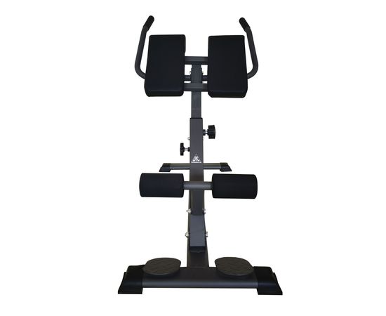 Гиперэкстензия DFC SUB027 для домашнего использования. Максимальная нагрузка на подушки до 100 кг, на поручни – до 80 кг. Угол наклона регулируется на 3 уровня. Профиль квадратной трубы 30 х 70 х 1,2 мм.
