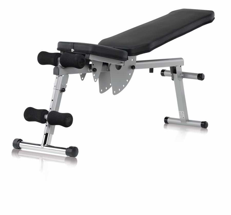 Эффективная скамья для пресса и верхней части тела. Мягкие спинка и сиденье. Раздельная регулировка положения скамьи, сидения и спинки. Эргономичная и легко складываемая конструкция.
