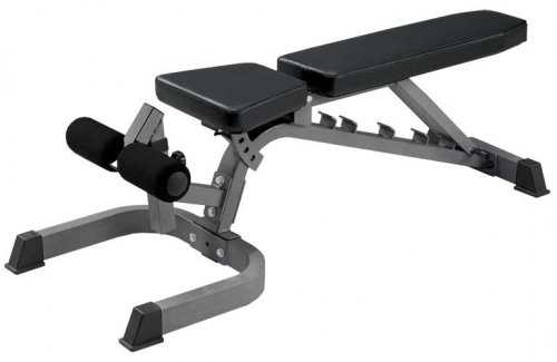 Скамья отлично подходит для занятий с гантелями.