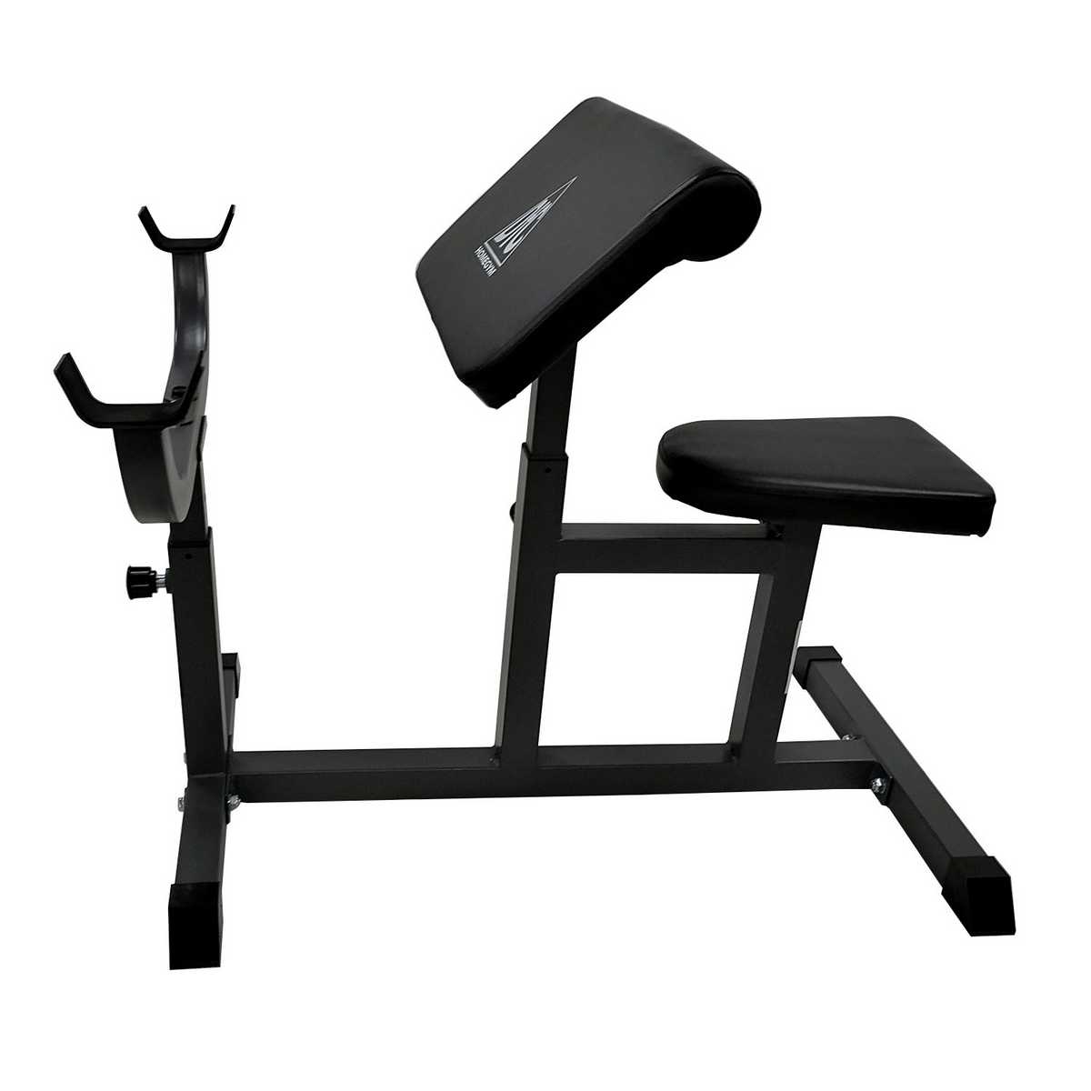 Сиденье, парта для бицепса и стойки под штангу регулируются по высоте. 4 уровня регулировки.