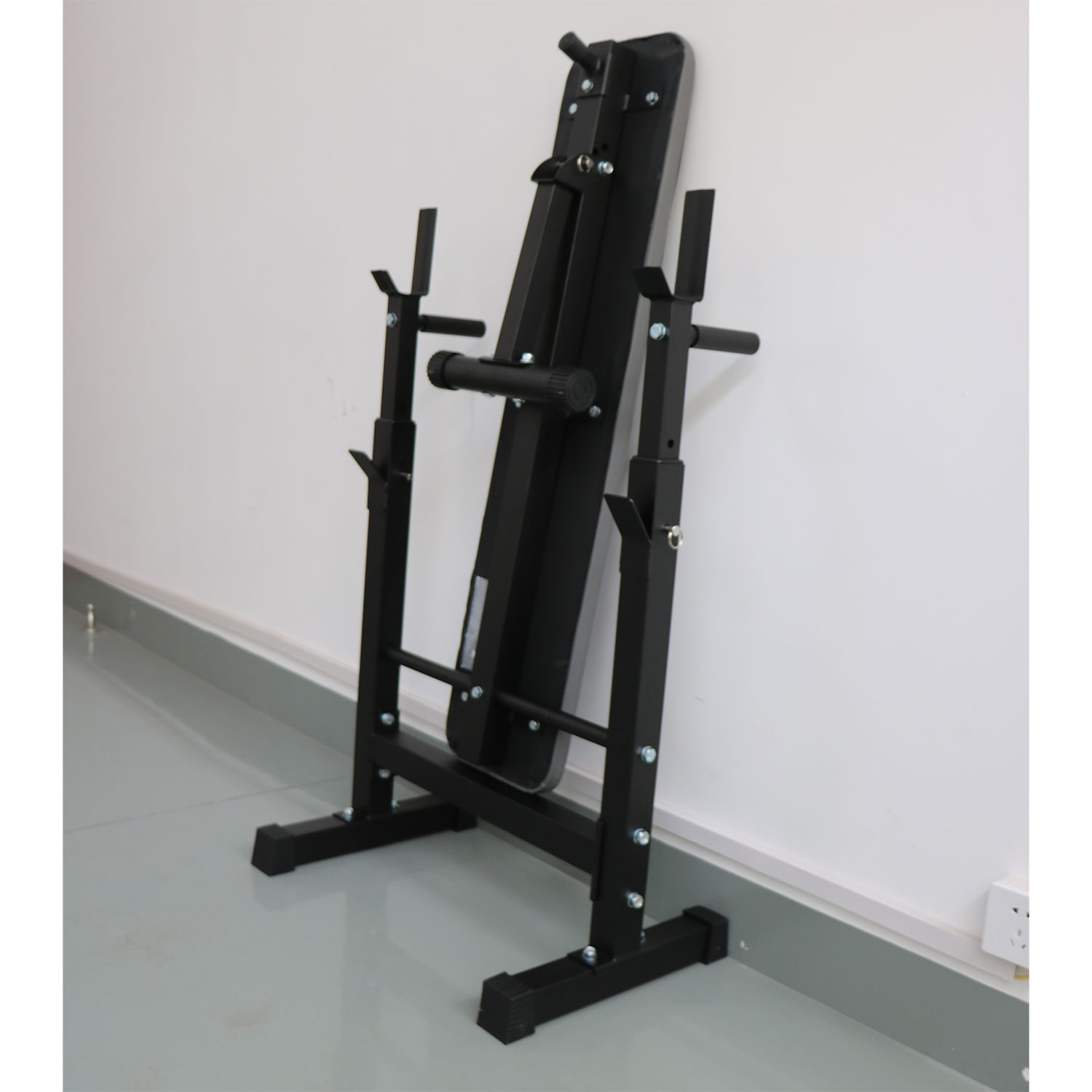 Складная конструкция позволит сложить скамью после занятий. Тренажер занимает совсем мало места.
