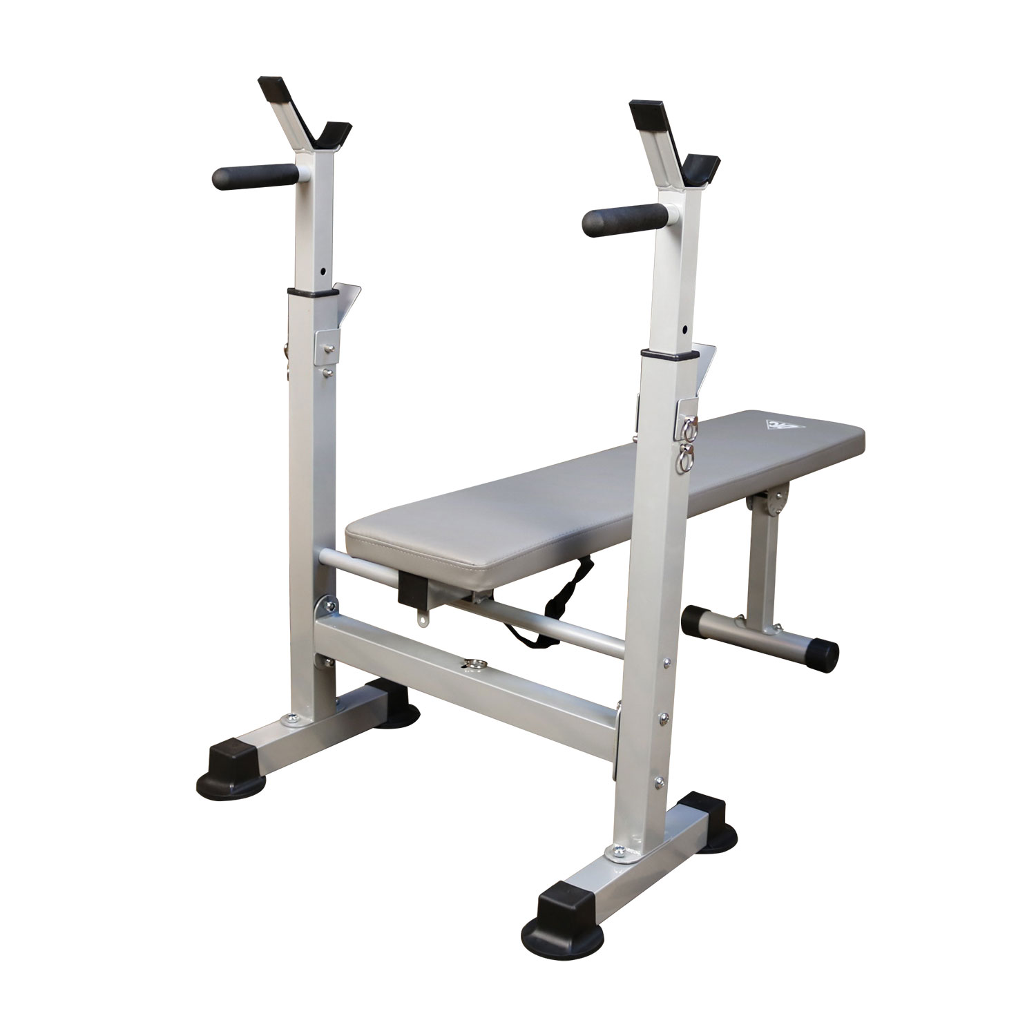 Резиновые ножки надежно фиксируют тренажер на полу.Тип скамья со стойками Нагрузка на скамью общая до 250 кг Вес пользователя до 130 кг Нагрузка на стойки для штанги до 120 кг Расстояние между стойками 67 см Высота штанги от земли от 81 до 100 см Размер скамьи 109 х 25 х 4 см Высота скамьи от пола 43 см Цвет тренажера серый Размер в рабочем виде 114 х 71 х 81 - 100 см Размер в сложенном виде 43 х 71 х 130 см Размер упаковки 113 х 30 х 17,5 см Объем 0,059 м³ Вес нетто 14,5 кг Вес брутто 15,5 кг Бренд DFC Страна производства Китай Гарантия 12 месяцев
