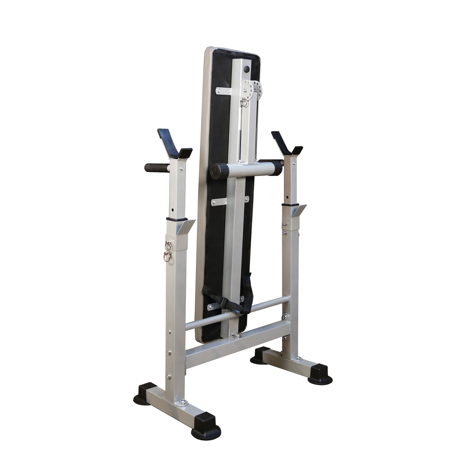 Передняя опора скамьи регулируется по углу наклона. Прекрасная возможность разнообразить силовые тренировки.