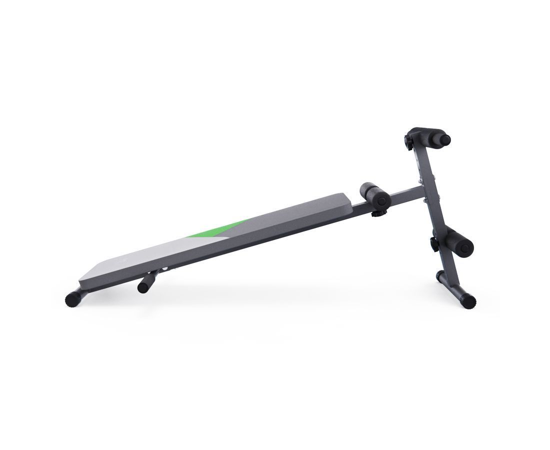 5 уровней регулировки угла наклона скамьи для жима позволяют менять нагрузку и эффективно прорабатывать разные группы мышц. Вы можете выполнять подъемы корпуса для прокачки пресса, подъемы ног для нижнего отдела живота, а также использовать скамью для упражнений с гантелями. Эргономичные регулируемые валики из вспененного материала обеспечивают комфорт во время тренировки. Нижние валики регулируются на 4 уровня, что позволяет надежно фиксировать стопы. Дополнительные удобства включают стойку для отжиманий и упоры, расширяющие спектр упражнений.