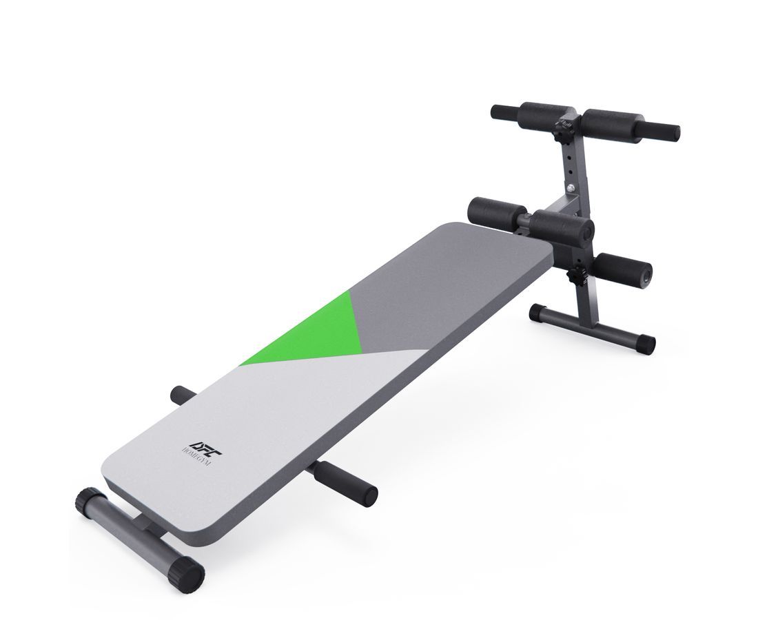 Скамья для пресса DFC DB127/2 с зеленым рисунком – надежный тренажер для домашних тренировок! Эта скамья спортивная сочетает в себе прочность, функциональность и удобство.