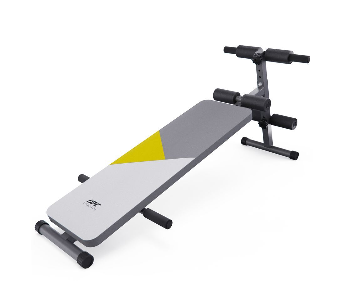Скамья для пресса DFC DB140/2 с желтым рисунком – надежный тренажер для домашних тренировок! Эта скамья спортивная спортивная сочетает в себе прочность, функциональность и удобство.