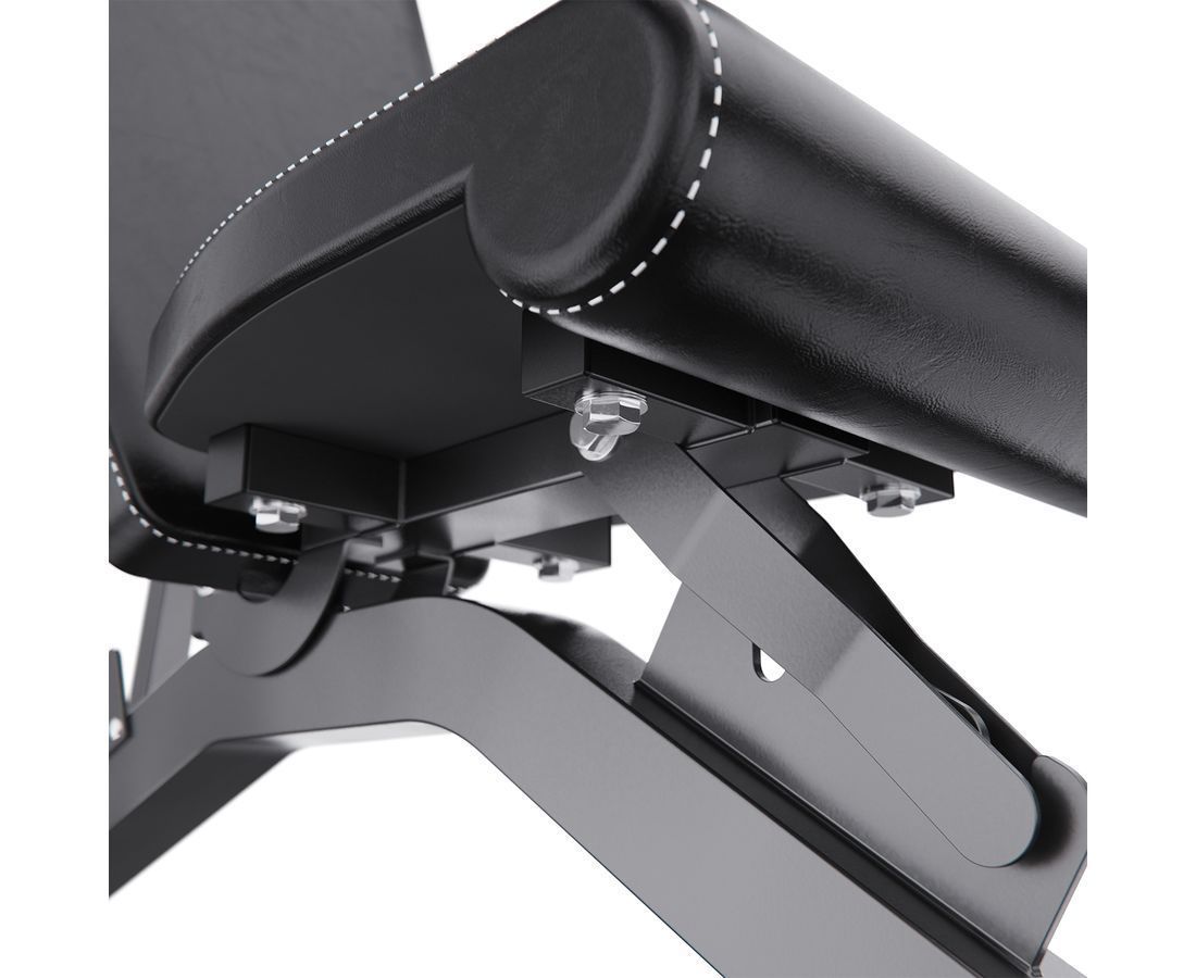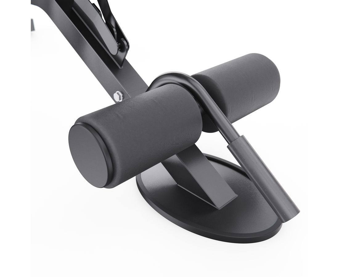 Скамья спортивная имеет регулируемую спинку, которая фиксируется в 8 различных положениях, позволяя вам подбирать нужный угол наклона. Это дает возможность выполнять как жим лежа, так и обратный жим, адаптируя скамью под ваши индивидуальные нужды. Сиденье имеет 3 уровня регулировки, что обеспечивает оптимальный комфорт и поддержку для каждого пользователя. Валики для ног из мягкого материала помогают зафиксировать ноги и избежать скольжения во время выполнения упражнений.
