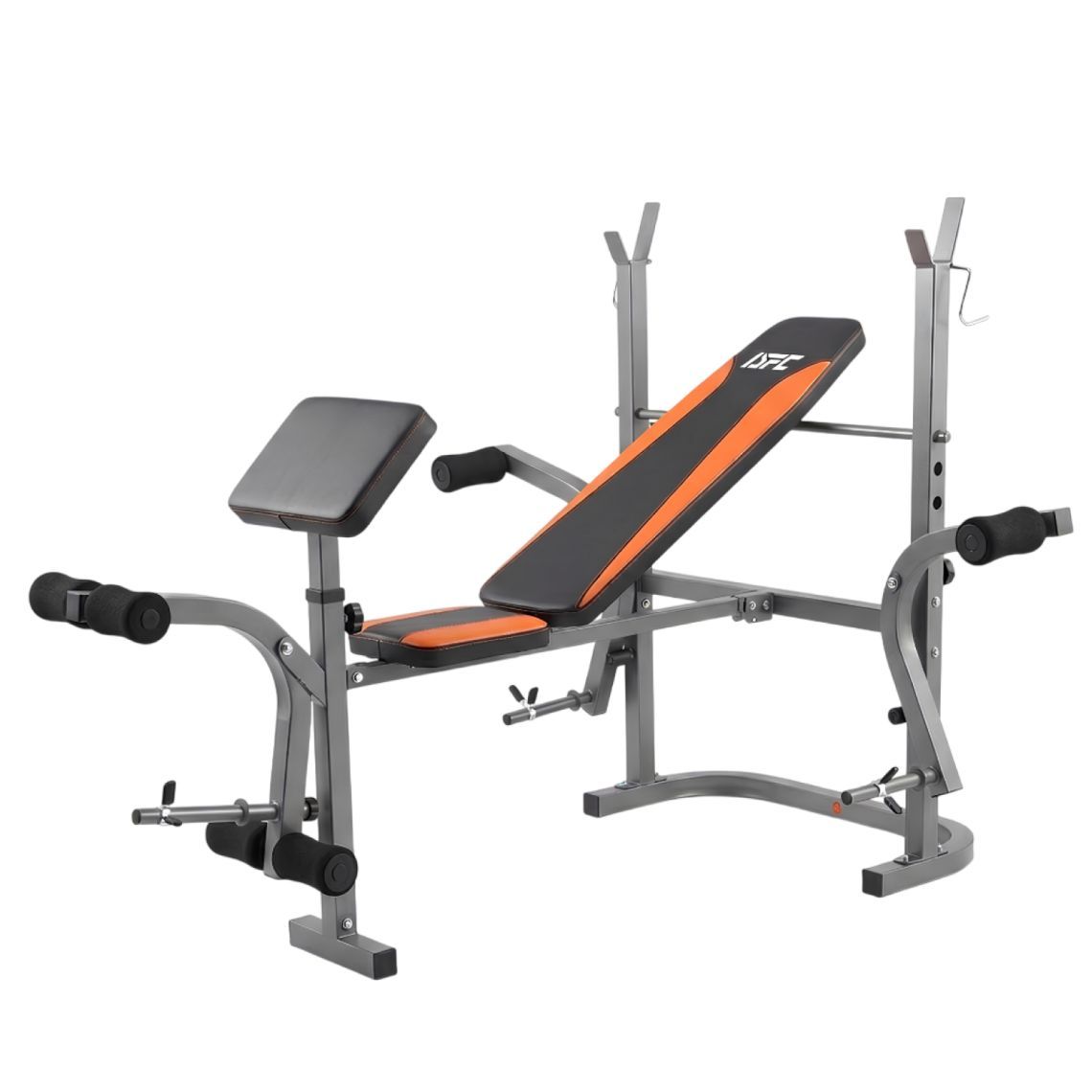 Скамья со стойками под штангу с опциями DFC D126 предназначена для домашнего использования и подходит для базовых силовых тренировок. Конструкция скамьи позволяет эффективно прорабатывать грудные мышцы, плечи, руки, мышцы ног, ягодицы, пресс, а также задействовать мышцы спины в качестве стабилизаторов.