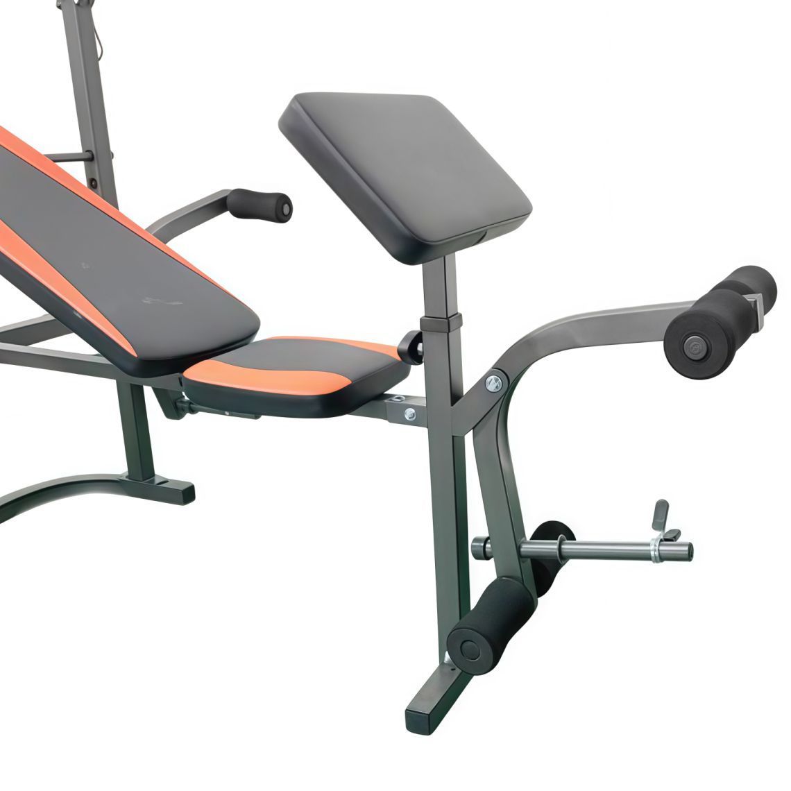 Скамья оснащена регулируемой спинкой с 4 уровнями наклона, что позволяет подобрать оптимальный угол под жим лёжа, разведение рук или упражнения на плечи в зависимости от уровня подготовки. Размер спинки — 85 х 27 х 4,5 см, сиденья — 26 х 26 х 4,5 см, высота от сиденья до пола — 50 см, обеспечивая стабильную и комфортную посадку для пользователей разных комплекций. Дополнительно предусмотрена партa для бицепса размером 35 х 23 х 4,5 см с 4 уровнями регулировки, которая расширяет функциональность скамьи и повышает удобство при тренировке рук. Мягкие верхние и нижние валики обеспечивают комфорт при выполнении упражнений на пресс и фиксацию ног, минимизируя нагрузку на суставы.