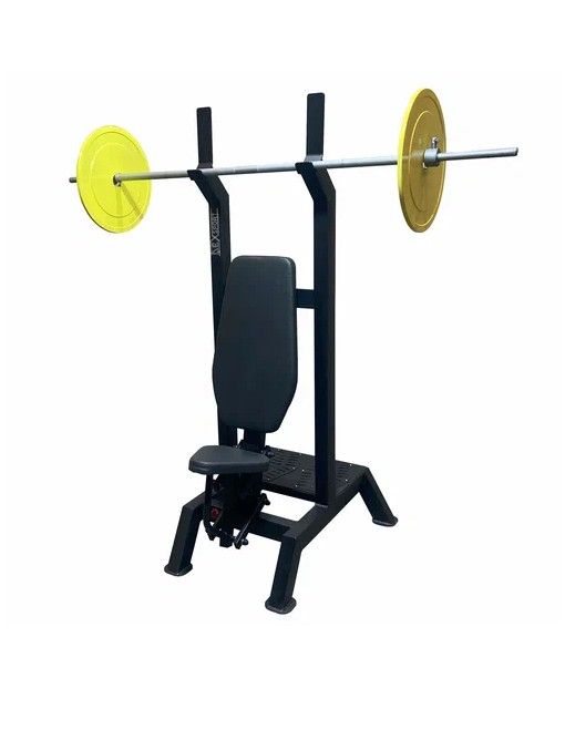 Спинка скамьи для жима штанги сидя имеет оптимальный угол наклона, регулируемое сиденье поможет спортсмену любого роста зафиксировать удобную позу. Надежная площадка для страхующего гарантирует безопасность во время упражнений.