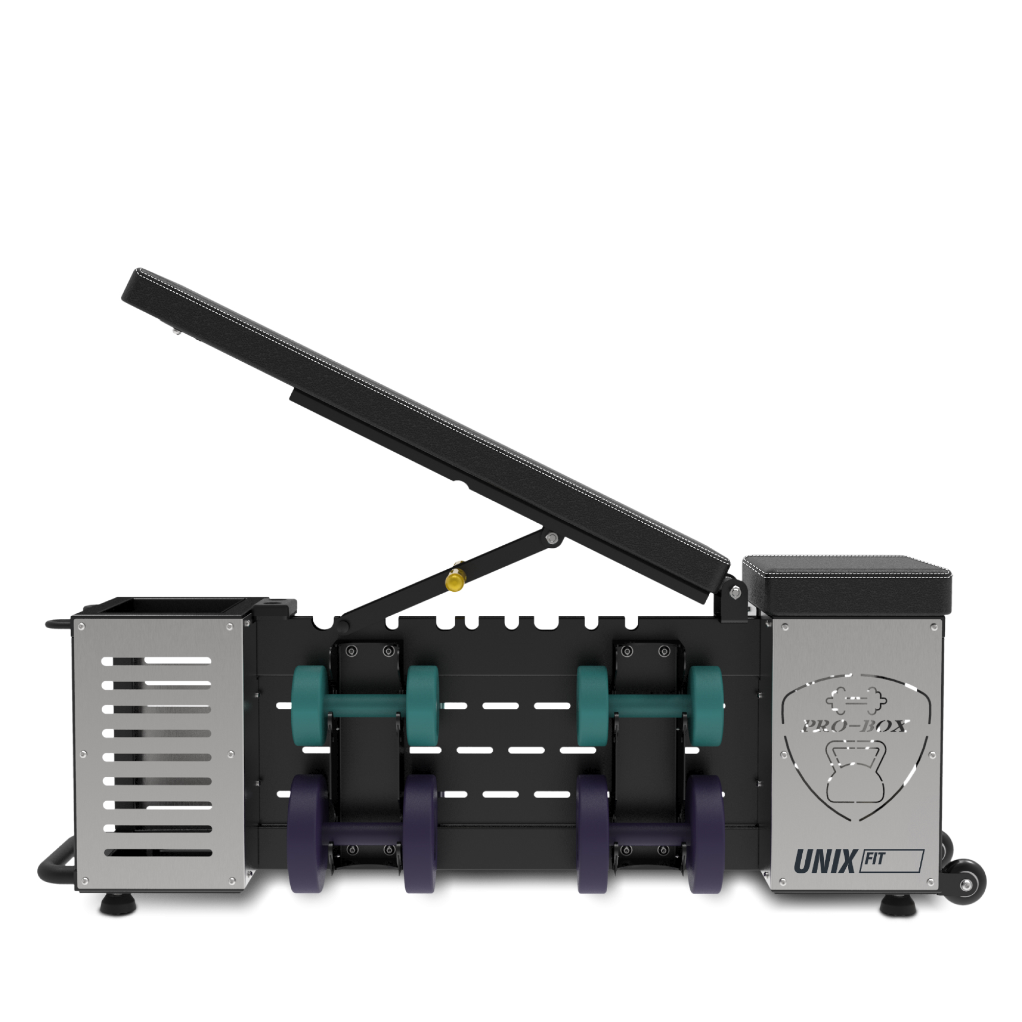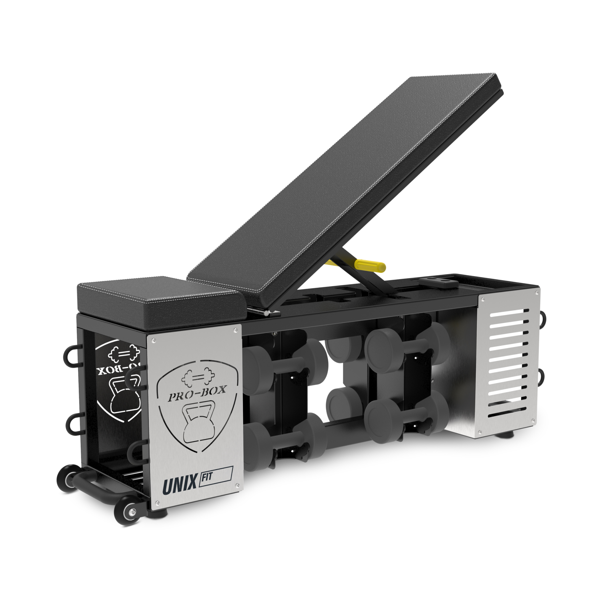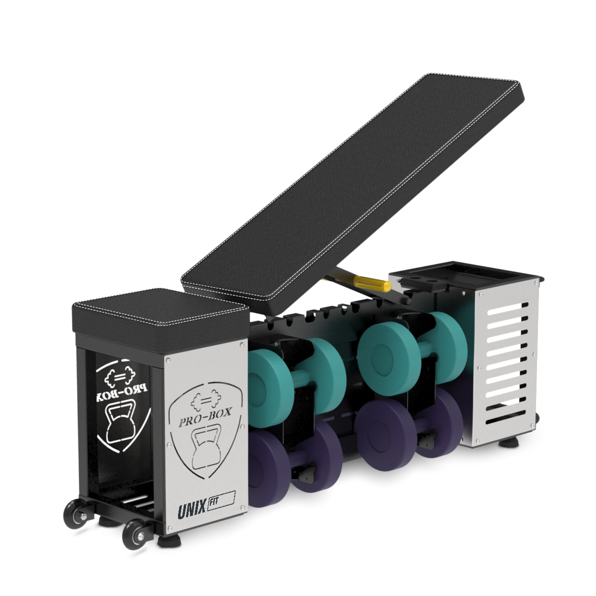 Скамья силовая UNIX Fit PRO многофункциональная (Dumbbell training box (without dumbbell and kettlebell)) с отделениями для хранения гантелей и аксессуаров, поможет быстро и с комфортом достичь идеального рельефного пресса! Особопрочная конструкция с жесткой стальной рамой обеспечивает долговечность и надежность в использовании.