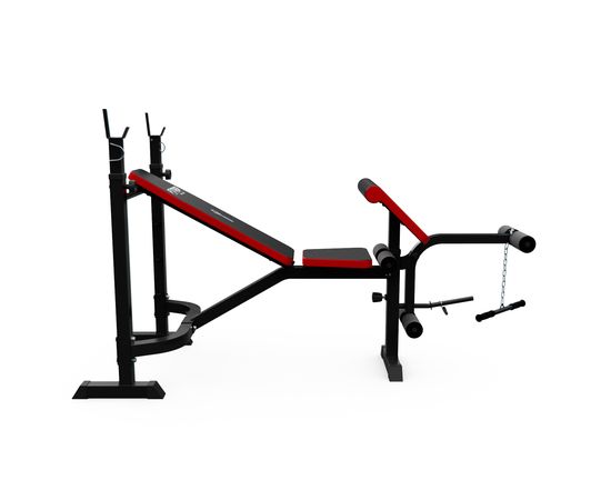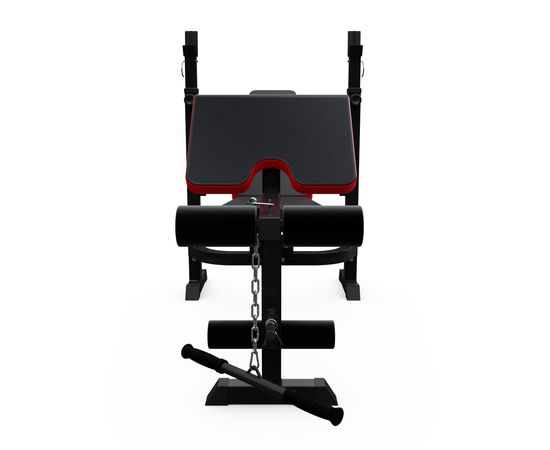 Скамья имеет регулировку угла наклона на 4 позиции, что позволяет адаптировать ее под различные типы упражнений и индивидуальные предпочтения пользователя. Стойки регулируются по высоте в диапазоне от 107 см до 132.5 см, что дает возможность использовать скамью людям различного роста и телосложения.