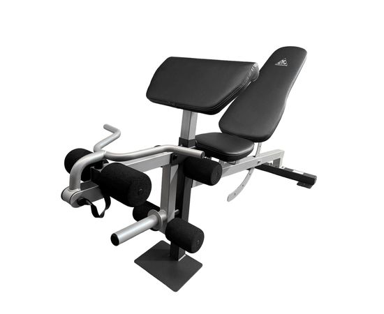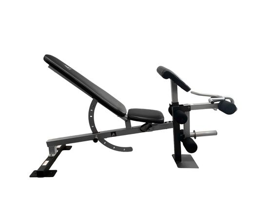 Скамья со съёмной партой для бицепса, валиками для тренировки ног (сгибание / разгибание) и съёмным рычагом для рук. Спинка скамьи позволяет отрегулировать угол наклона в 7-ми положениях. Сиденье регулируется на 2 уровня по углу наклона.