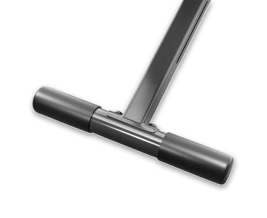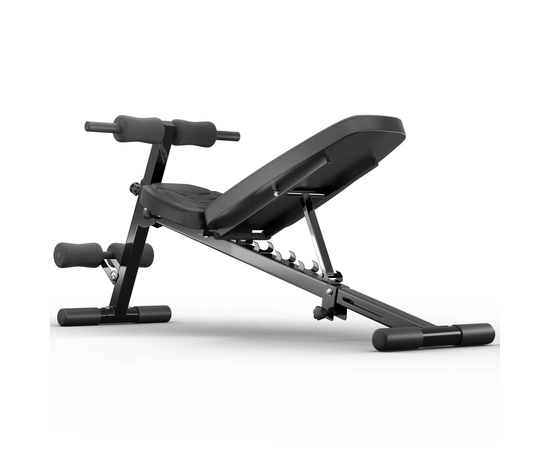 Валики из вспененного материала регулируются на 8 уровней по высоте и обеспечивают надёжную фиксацию во время тренировки. Большие ножки скамьи для фитнеса прорезинены по всей площади, чтобы защитить пол, а противоскользящая конструкция всегда обеспечивает устойчивое положение. Скамья также имеет складную и компактную конструкцию, чтобы сэкономить место в доме.