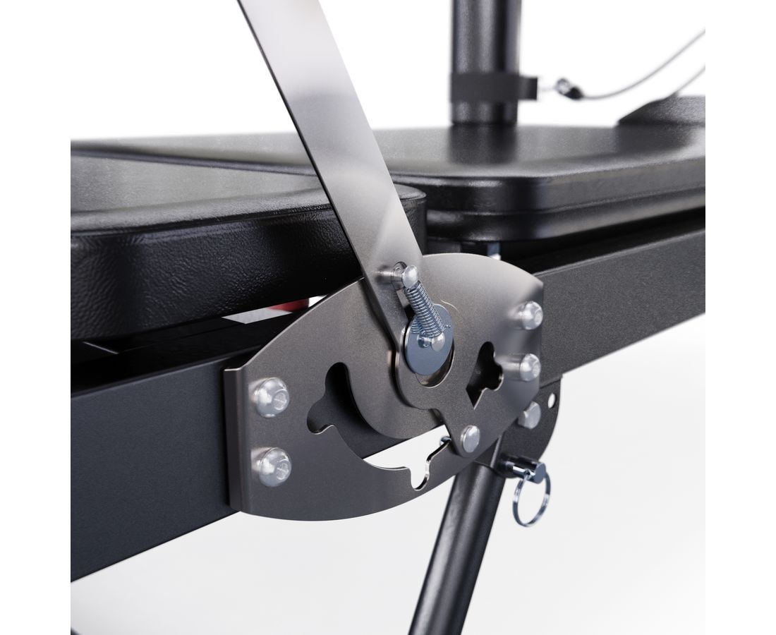 Реформер выполнен из высококачественных материалов и рассчитан на рост пользователя до 2 метров. Размер подвижного сиденья 96 х 55 х 5 см обеспечивает комфорт при выполнении различных упражнений, а подголовник 21 х 15 х 5 см и возможность регулировать подплечники на 2 уровня помогают сохранить правильное положение головы и шеи. Расстояние от сиденья до пола — 34 см, что делает посадку максимально удобной.