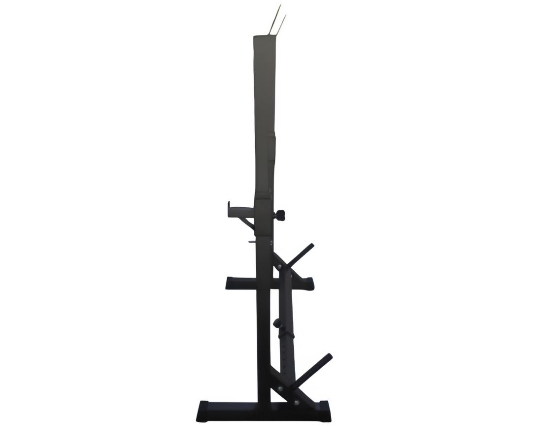 Расстояние между стойками регулируется по ширине на 13 уровней в диапазоне от 82 до 119 см, а по высоте — на 8 уровней от 106 до 164 см, что позволяет точно настроить тренажёр под рост и комплекцию пользователя и выполнять широкий спектр упражнений. Длина посадочного места под диски составляет 20 см.