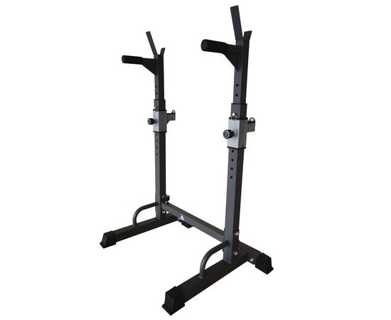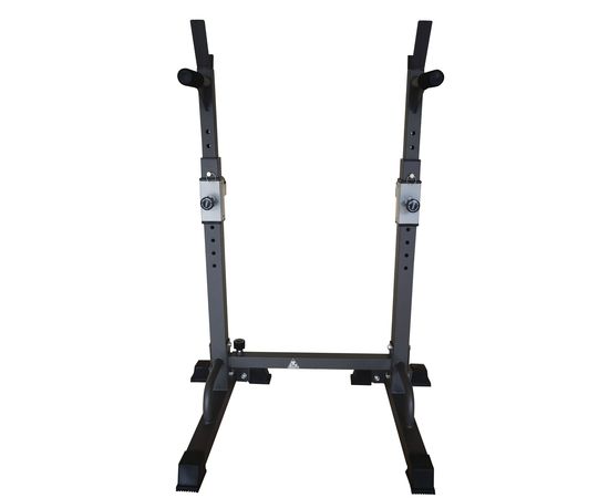 Стойка под штангу с брусьями DFC DS10 для домашнего использования. Профиль основной трубы 50 х 50 х 1,2 мм. Расстояние между стойками 55-54-64 см, высота от нижней перекладины до пола 13 см. Регулировка брусьев по высоте на 10 уровней (верхние ручки) и 8 уровней – нижние стойки от 104 до 148 см, ширина стоек регулируется на 10 уровней от 90 до 136 см. Максимально допустимая нагрузка на брусья до 100 кг, на держатель для штанги – до 100 кг, на подвижный держатель штанги – до 50 кг.