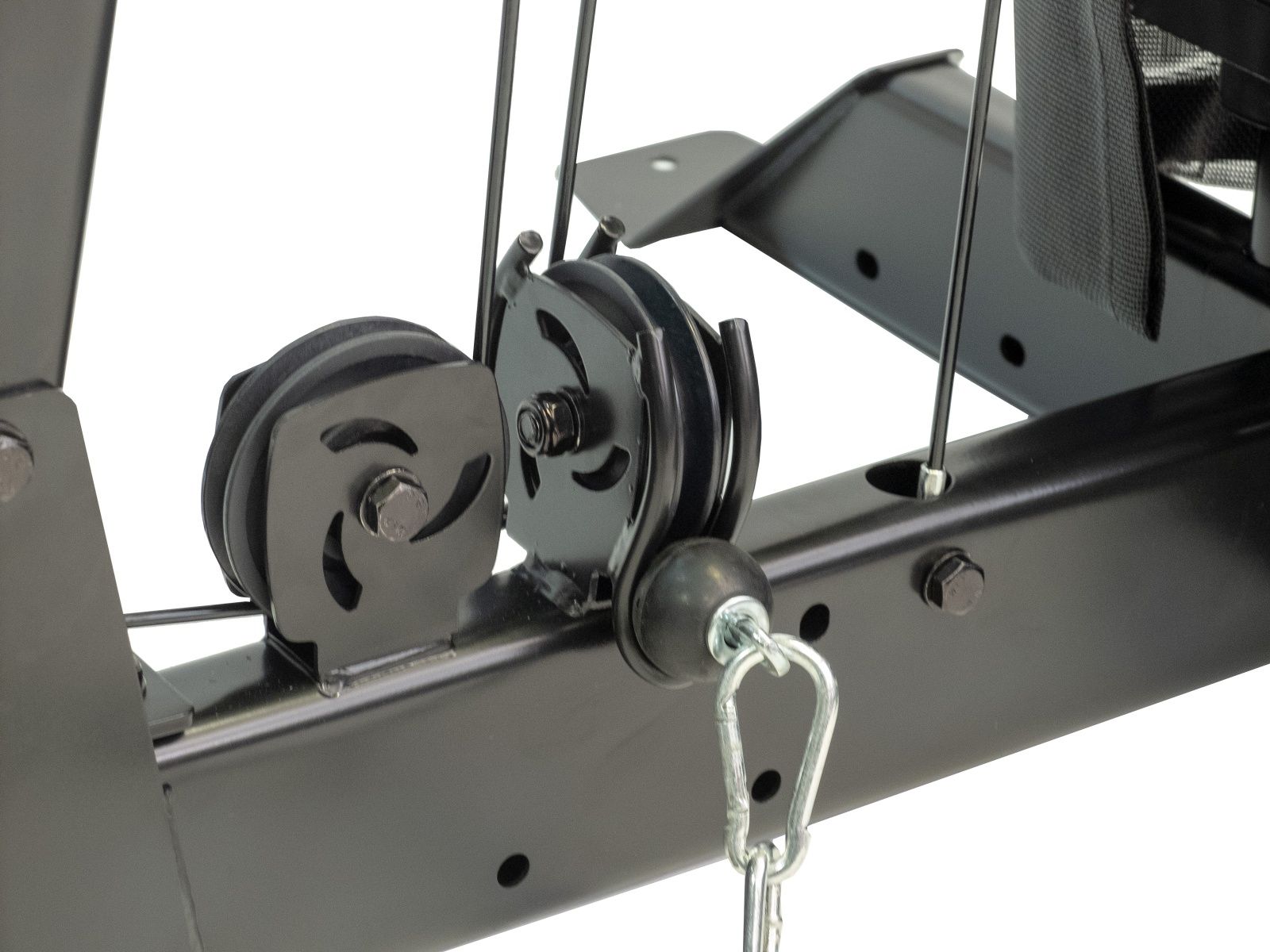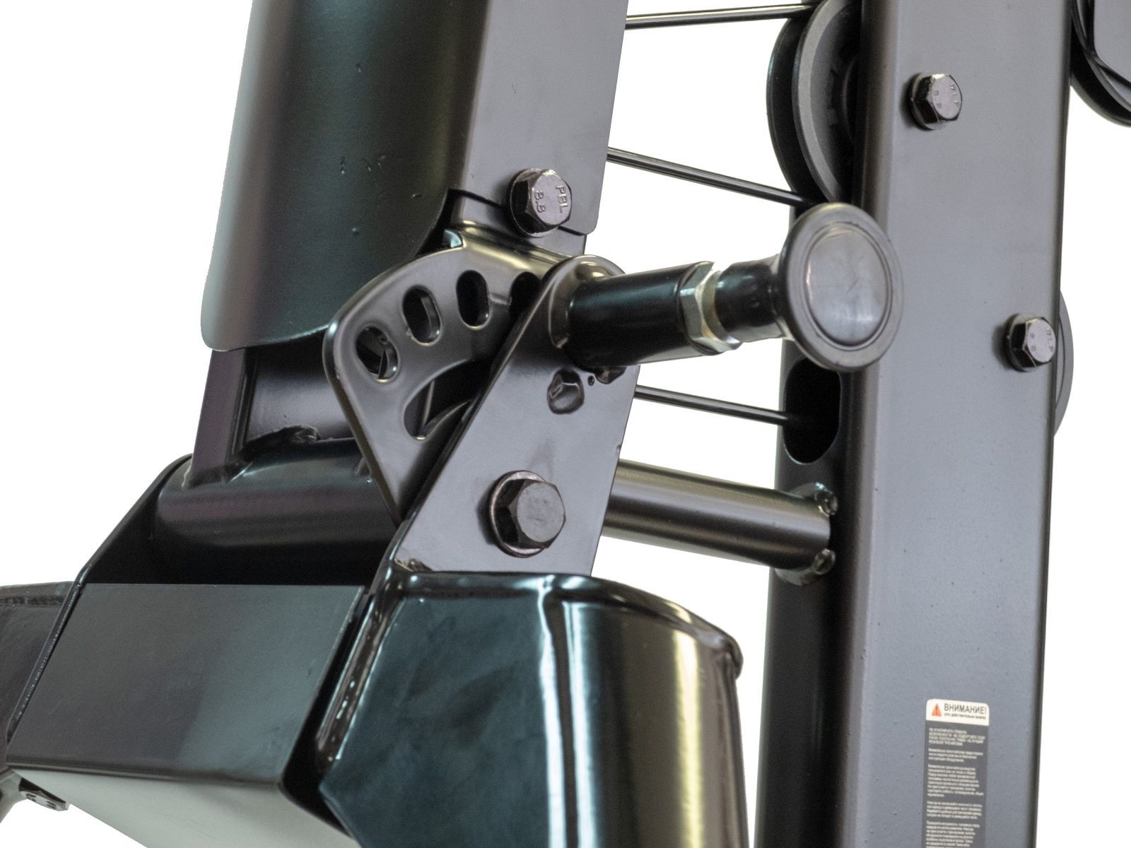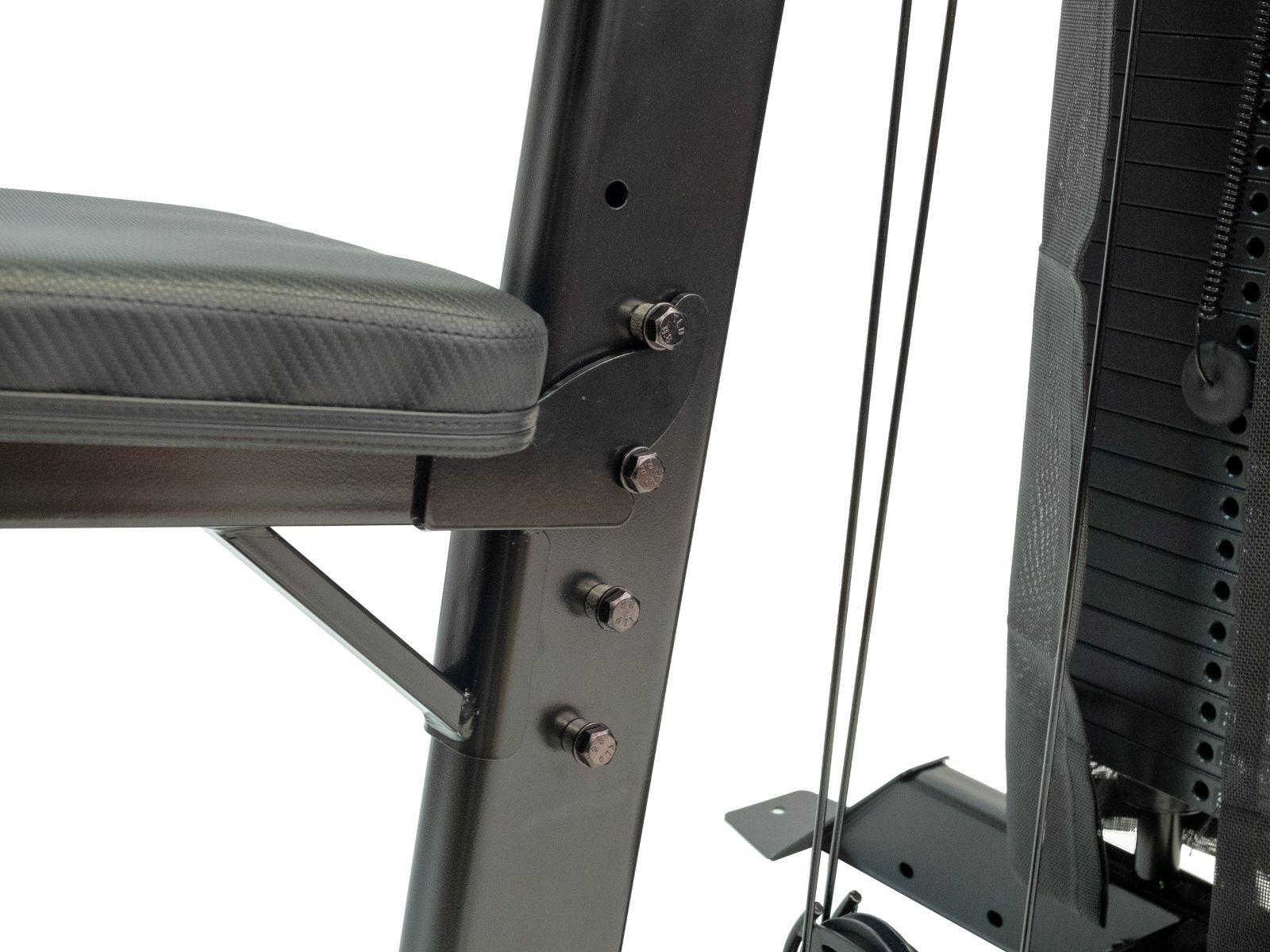 Так же в основание тренажёра расположены 3 отверстия для фиксации тренажёра к полу для большей устойчивости. Фиксация тренажера к полу обязательна при использовании тренажера с опцией Турник-пресс-брусья и носит рекомендательный характер при других вариантах комплектации.