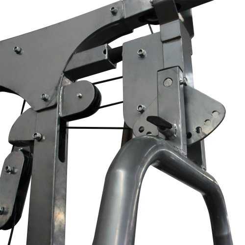 Ролики на подшипниках обеспечивают плавное движение. Весовой стек имеет защитный кожух для безопасности пользователя.