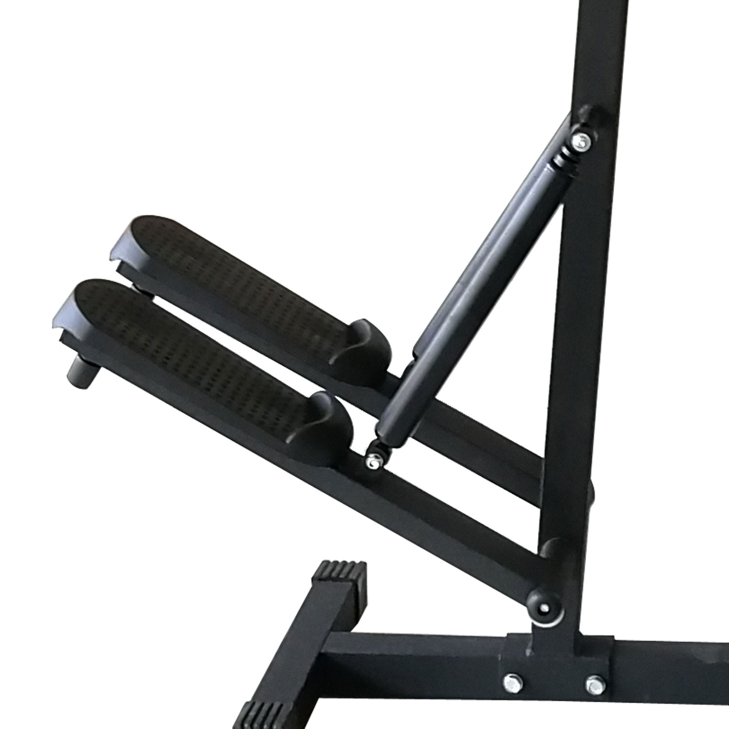Многофункциональный тренажер с встроенным весовым стеком. Позволяет выполнять комплекс упражнений на различные группы мышц. Дополнительно тренажер имеет брусья для отжимания и степпер с гидроцилиндрами.