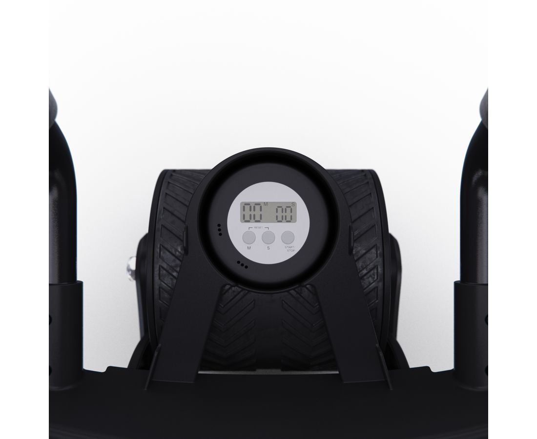 Монохромный LCD-дисплей диаметром 6,5 см отображает время тренировки. Дисплей работает от батарейки LR1130, не входит в комплект. Между подлокотниками располагается подставка под смартфон: разнообразьте свои тренировки просмотром фильма или подкаста.