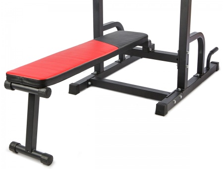 Силовой комплекс 7030 очень удобен, практичен и универсален. В него входят крючки под гриф, скамья, а также турник с брусьями, не требующие дополнительных креплений.