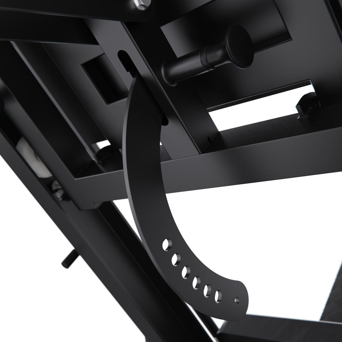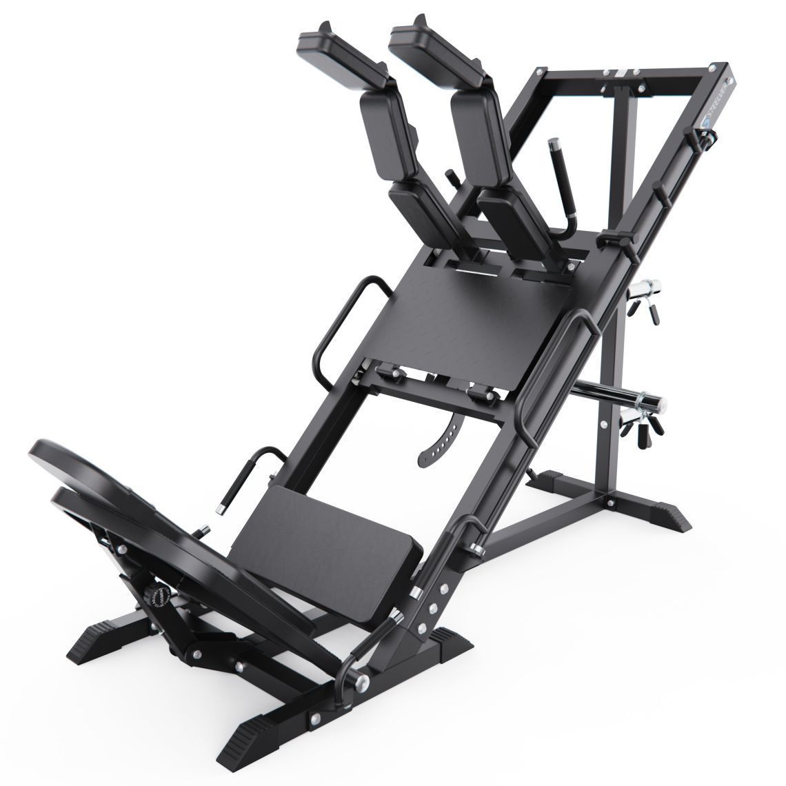 Конструкция позволяет регулировать положение под рост пользователя, а также переставлять спинку, что даёт возможность выполнять различные упражнения в режимах жима ногами и гакк-приседаний. Тренажер имеет прочную раму с профилем 75 х 75 х 3 мм, что гарантирует надежность и долговечность конструкции.