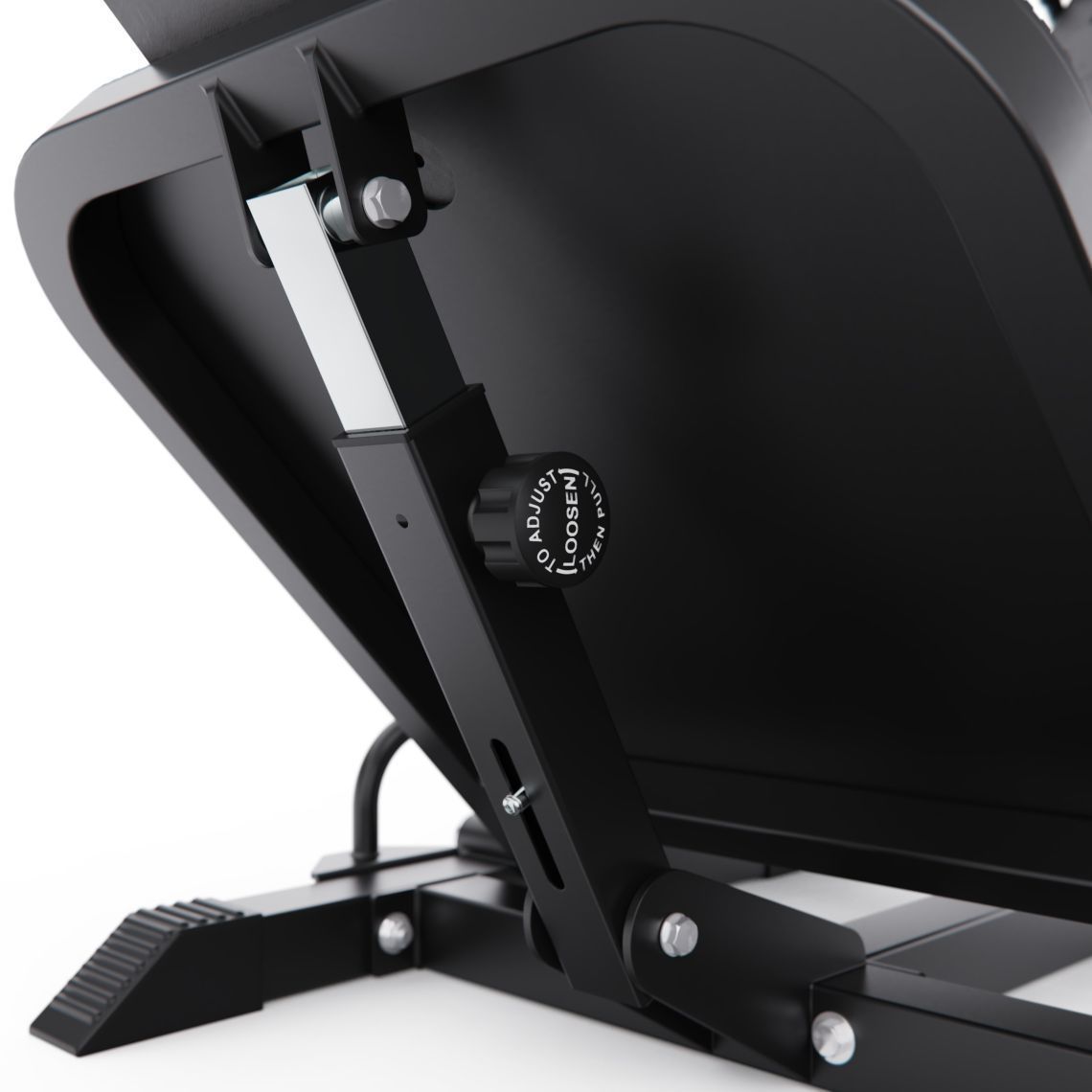 Для комфортных и безопасных тренировок тренажёр оснащён удобной спинкой, которая надёжно поддерживает спину и помогает сохранять правильное положение тела во время выполнения упражнений. Рифлёная платформа для ног обеспечивает устойчивый упор и предотвращает соскальзывание стоп при жиме.