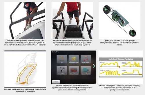Степперы лестничного типа серии "С" - это отлично реализованное дизайнерское решение, выполненное в единой концепции с остальной кардио группой Matrix. Вне зависимости от того, собираетесь ли Вы использовать лестницу в зале вместе с другими тренажерами Matrix или отдельно, тренажер гармонично впишется в любой интерьер. Размеры лестницы оптимизированы для пользователей практически любой комплекции. Расположение рукояток и поручней максимально удобно, и дает ощущение устойчивости на тренажере. Во время подготовки к старту или паузы движение ступеней блокируется. Блокировка также происходит в случае, если пользователь сошел с лестницы или в проемы ступеней попал инородный предмет (шнурок от обуви, к примеру). Консоль с встроенным комплексом различных тренировочных программ - помимо стандартных классических, сюда входят специализированный профиль "WFI-протокол" (аналог фитнес-теста Пожарной Службы США). Помимо тренировочных программ, консоли (в зависимости от модификации) предлагают целый спектр различных мультимедийных, и фитнес- и сервис-ориентированных приложений: выгрузка результатов тренировок в on-line сервис Livestrong, развлекательная составляющая с использованием iPod/iPhone/Nike+iPod, мультимедийный on-line сервис Netpulse, революционная технология интерактивного видео "Виртуальный ландшафт™" (Virtual Active™), беспроводная система глобального сбора эксплуатационных данных Asset Management™ и интеграция с внешними системами анализа состояния пользователя (CSAFE, FitLinxx™ Wireless RF, Fitconnection).