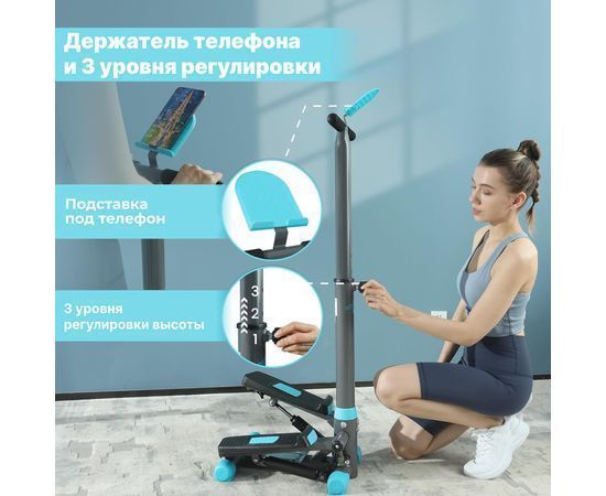 Максимальная нагрузка на степпер тренажер составляет 100 кг. Гидравлическая система нагрузки обеспечивает плавные и бесшумные движения, снижая нагрузку на суставы. Вы можете регулировать интенсивность своей тренировки, меняя скорость/темп шага. Механизм простой: чем быстрее вы шагаете, тем интенсивнее ваша тренировка. Регулируемая высота поручня на 3 уровня подойдет для комфортной тренировки пользователей разного роста.