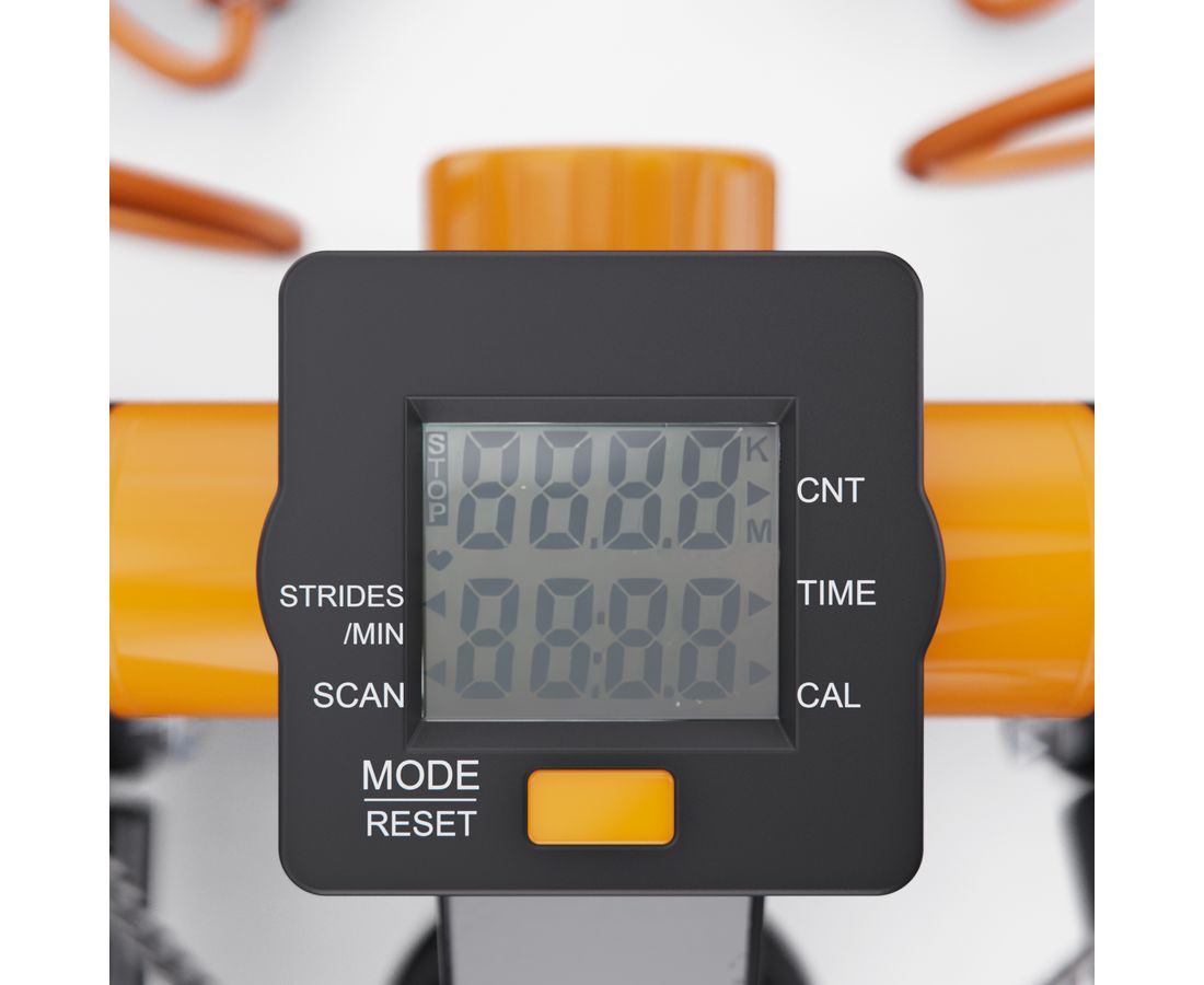 На монохромном LCD-дисплее отображаются все ключевые параметры: время тренировки, количество шагов, шагов в минуту и сожжённые калории. Это позволяет легко отслеживать прогресс и контролировать эффективность каждого занятия. В комплекте 1 батарейка типа LR44.